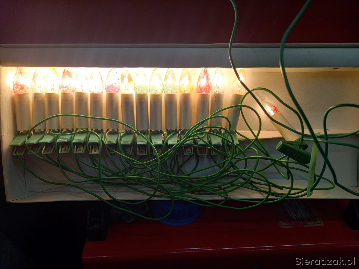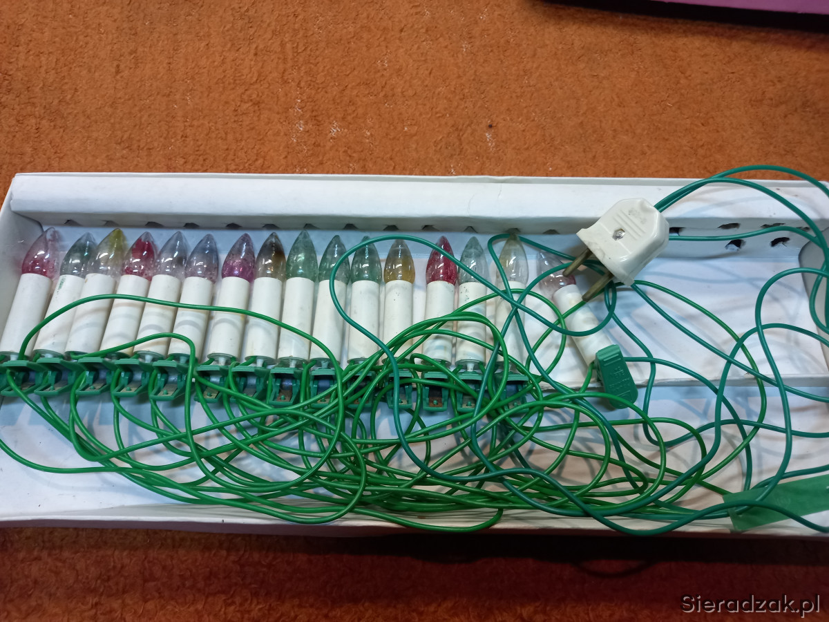 Sprzedam stary ale sprawny komplet lampek choinkowych z epoki minionej z bardzo dobrze zachowanym opakowaniem.