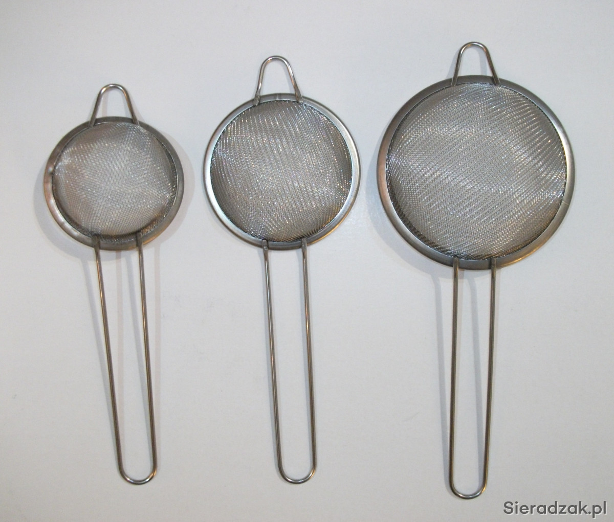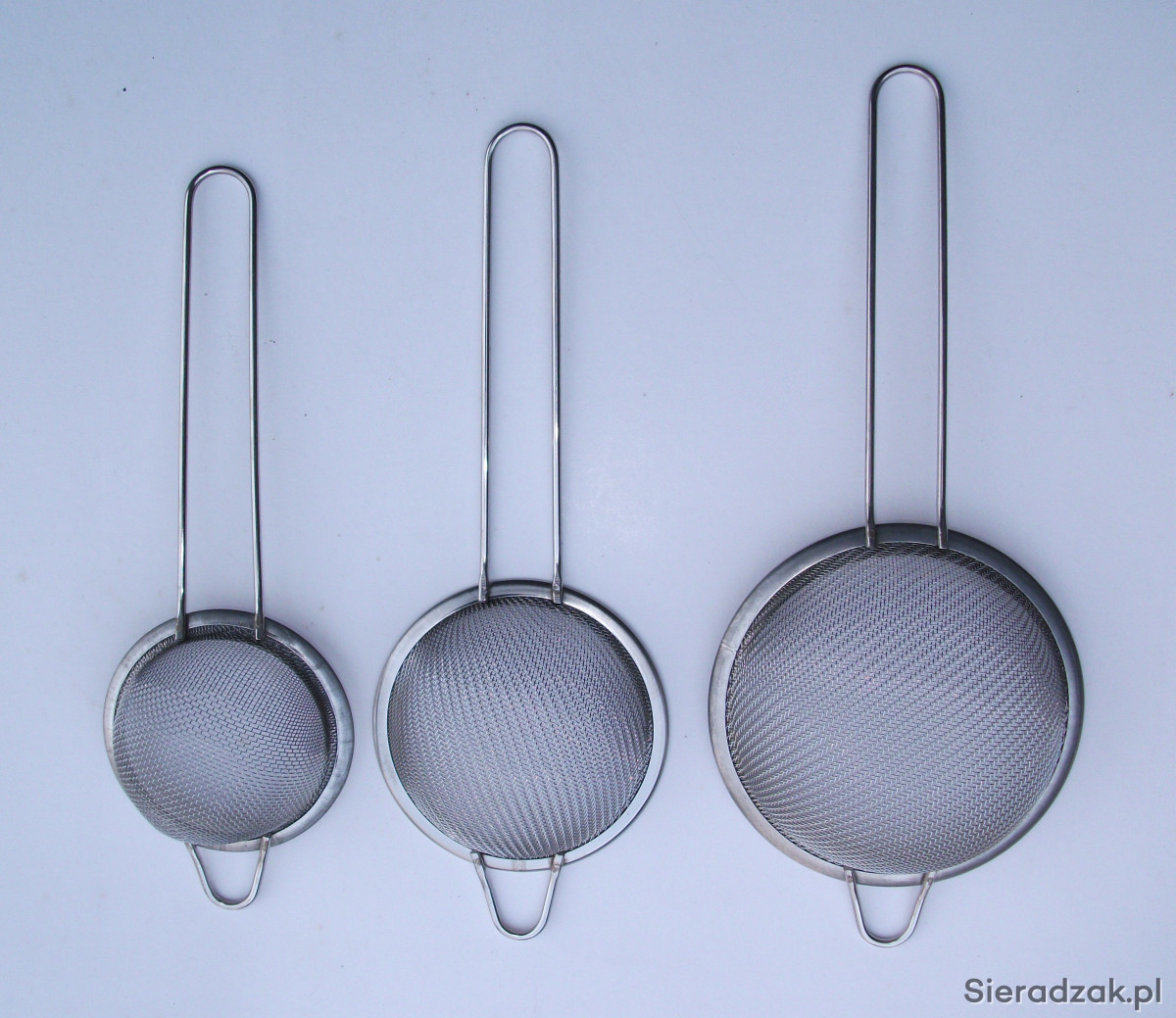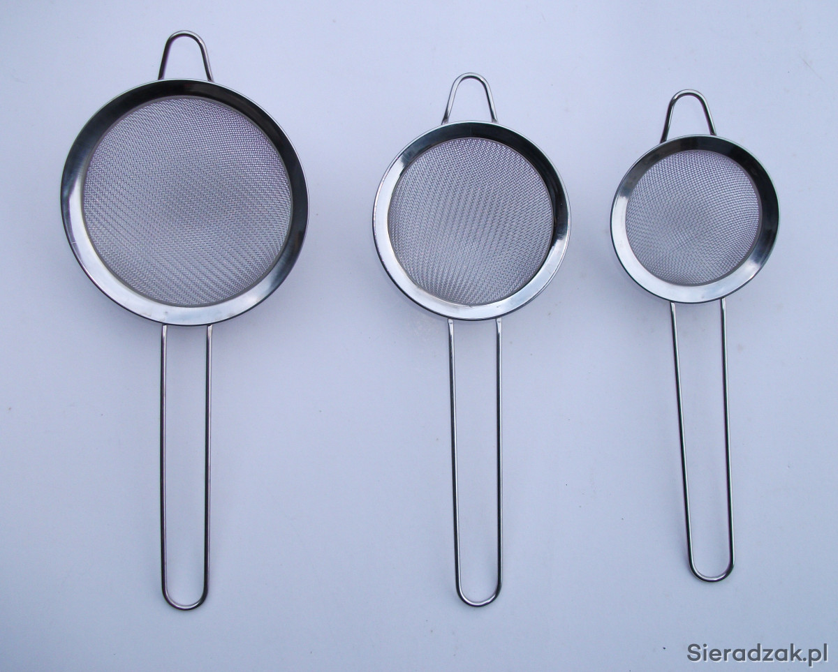 Oferta dotyczy zestawu trzech sitek z drobnymi oczkami. Wykonane z wysokiej jakości stali nierdzewnej.