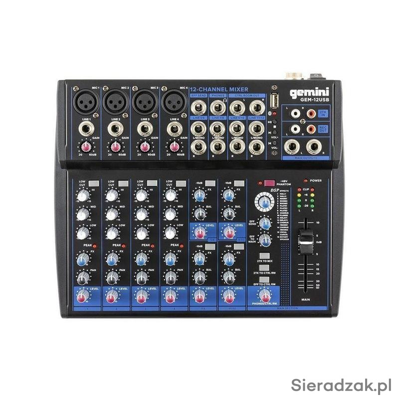 Mikser Audio Gemini Bluetooth USB MP3 12-kanałów 4-Stereo DSP + Gratis