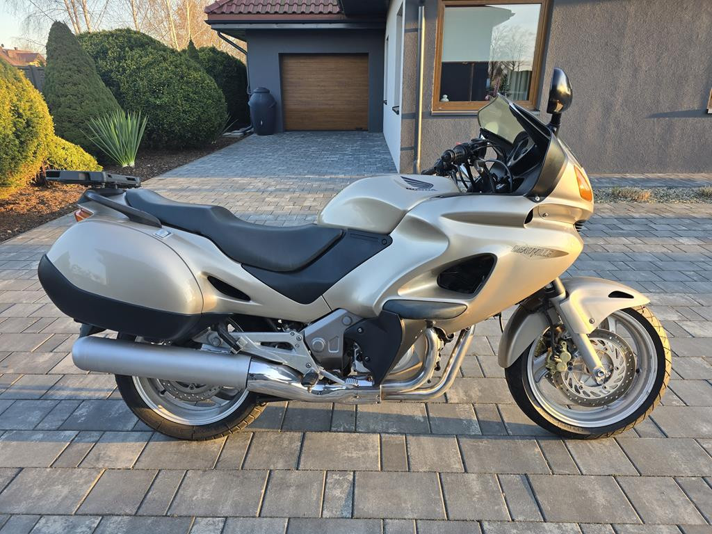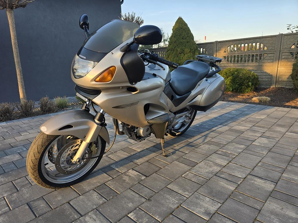 Do sprzedania ładna Honda NTV650 Deauville z 2000r. Motocykl świeżo sprowadzony z Niemiec. Honda bezwypadkowa i w oryginalnym lakierze. Wizualnie ładnie się prezentuje. Posiada normalne ślady użytkowania adekwatne do wieku motocykla. Oryginalny przebieg 26450km udokumentowany. Silnik, skrzynia i hamulce pracują jak należy. Silnik odpala bardzo ładnie zimny i ciepły. Honda świeżo po czyszczeniu gaźników w myjce ultradźwiękowej. Założony został również nowy żelowy akumulator i nowy filtr powietrza. Na motocykl wystawiam fakturę. Kupujący zwolniony z opłaty skarbowej. Zapraszam na oględziny i jazdę próbną. W ofercie posiadam duży wybór motocykli i skuterów. Możliwość dowozu do klienta. Na więcej pytań chętnie odpowiem pod numerem telefonu 667-702-600.