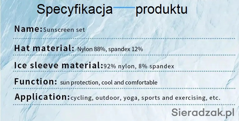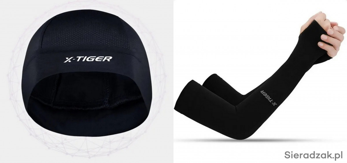 Oferuję Komplet na lato wykonany z lodowego jedwabiu (LYCRA): rękawy naramienne i czepek do jazdy na rowerze, biegania, sportów na świerzym powietrzu i szeroko pojętej turystyki. Dzianina jest oddychająca i elastyczna, chłodzi ciało i chroni przed promieniami UV.