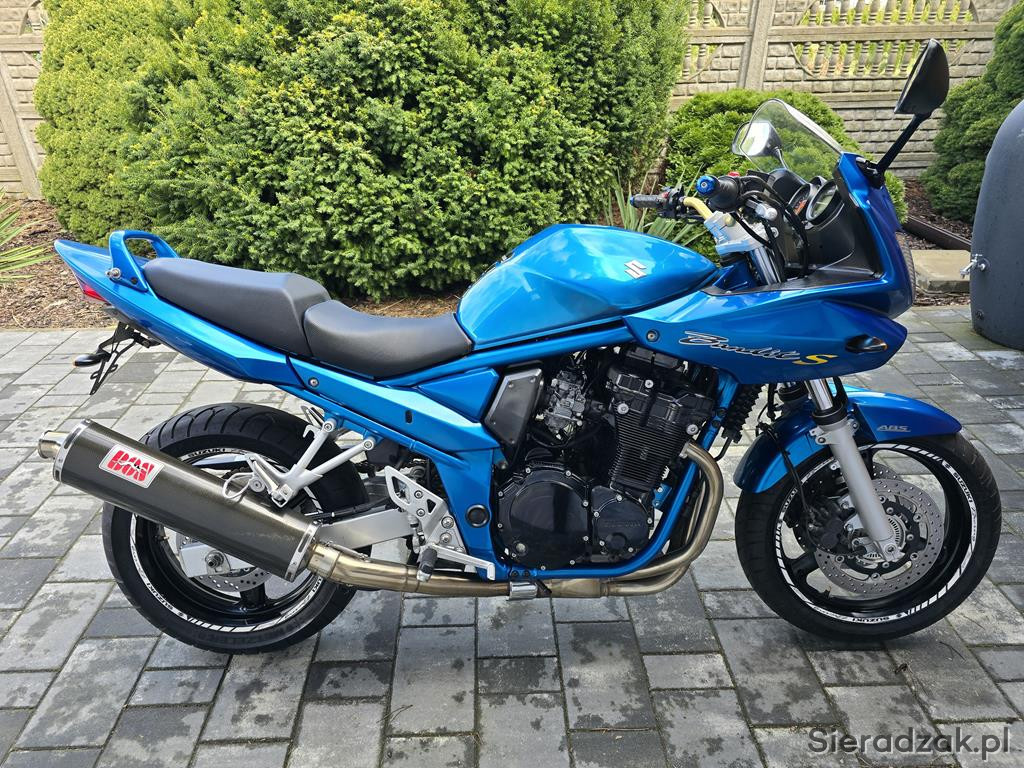 Do sprzedania bardzo ładny Suzuki Bandit 650 z 2005r. Motocykl świeżo sprowadzony z Niemiec. Bandit bezwypadkowy. Wizualnie prezentuje się bardzo ładnie. Lakier w bardzo dobrym stanie. Mechanicznie wszystko w pełni sprawne. Oryginalny przebieg 31972km udokumentowany do samego końca. Silnik, skrzynia, sprzęgło i hamulce pracują jak należy. Opony w bardzo dobrym stanie. Założony nowy zestaw napędowy, nowy żelowy akumulator i nowe świece zapłonowe. Dodatkowo motocykl wyposażony w wydech BOS wraz z Dbkillerem, akcesoryjną kierownice, końcówkie kierownicy Rizoma, naklejki na felgi, akcesoryjny uchwyt tablicy rejestracyjnej oraz ledowe kierunkowskazy przód i tył. Kupujący zwolniony z opłaty skarbowej. Zapraszam na oględziny i jazdę próbną. Możliwość dowozu do klienta. Na więcej pytań chętnie odpowiem pod numerem telefonu 667-702-600.