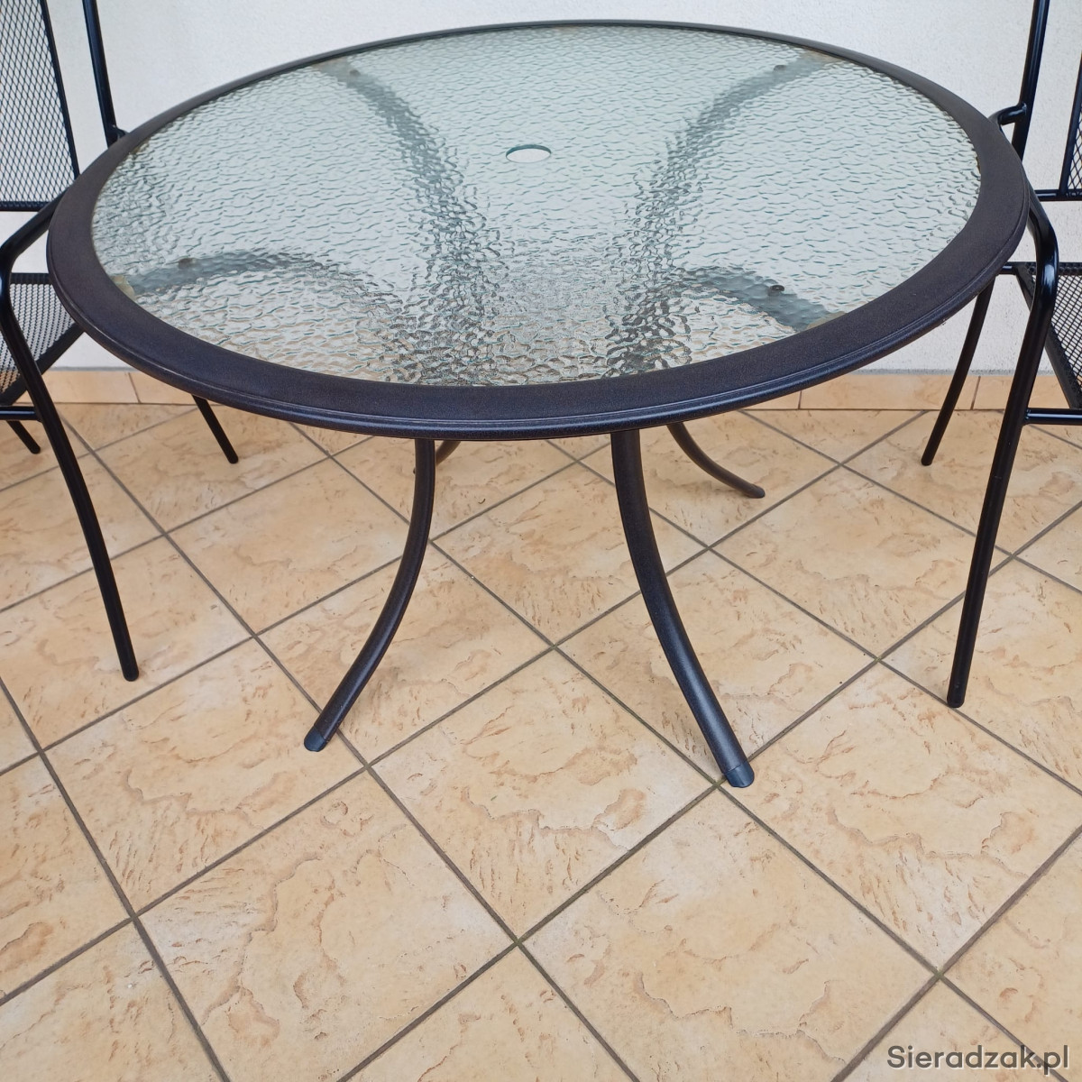 Posiada w środku otwór na zamontowanie parasola.