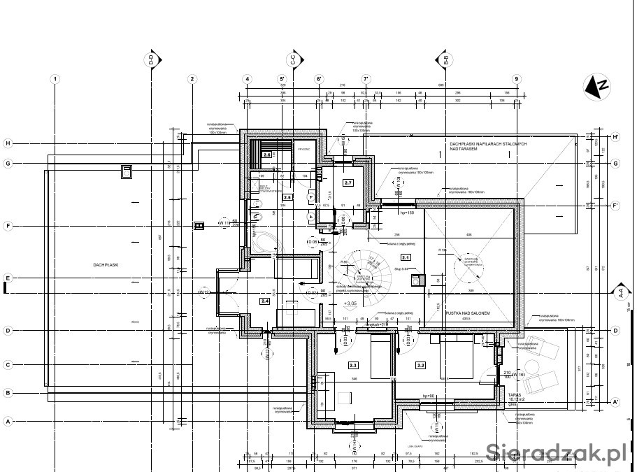 1. Dach - strop zbrojony podwójny, beton B-25 ocieplony styropian EPS-100 35-65 cm grubości, papy termozgrzewalne x 3 (szczegóły na maila).