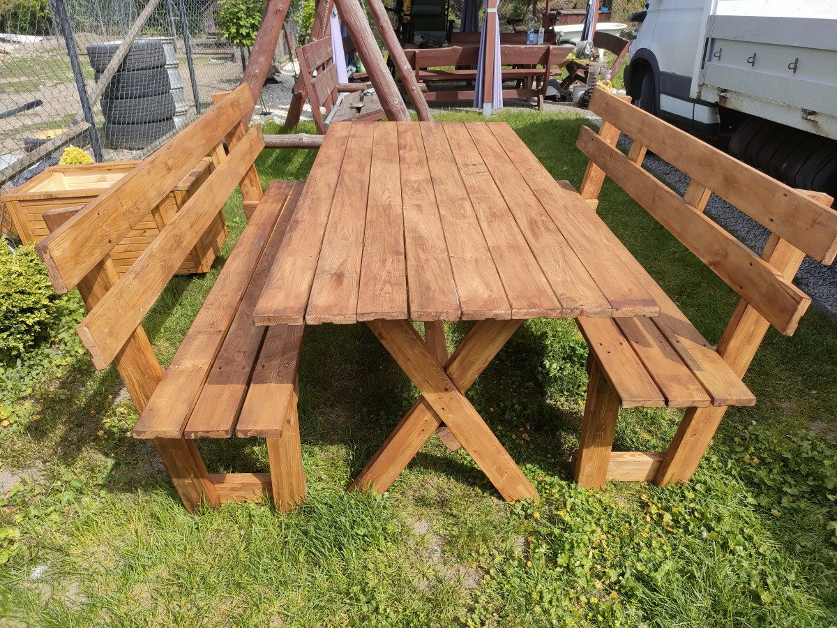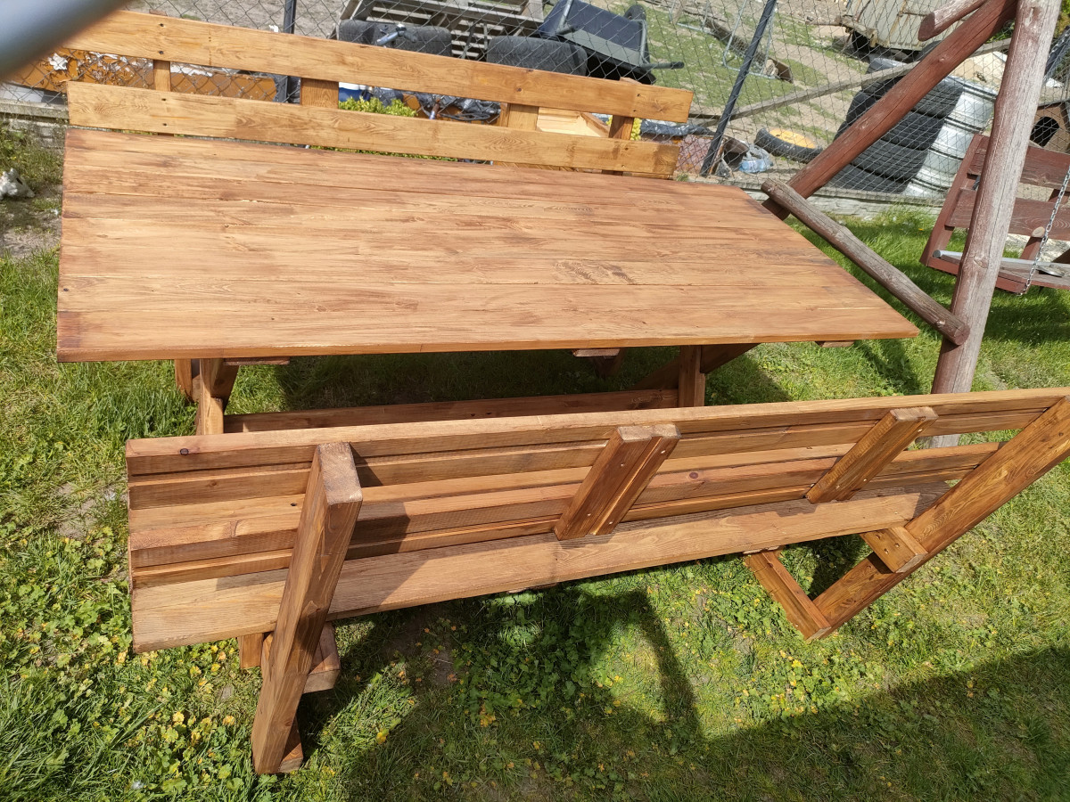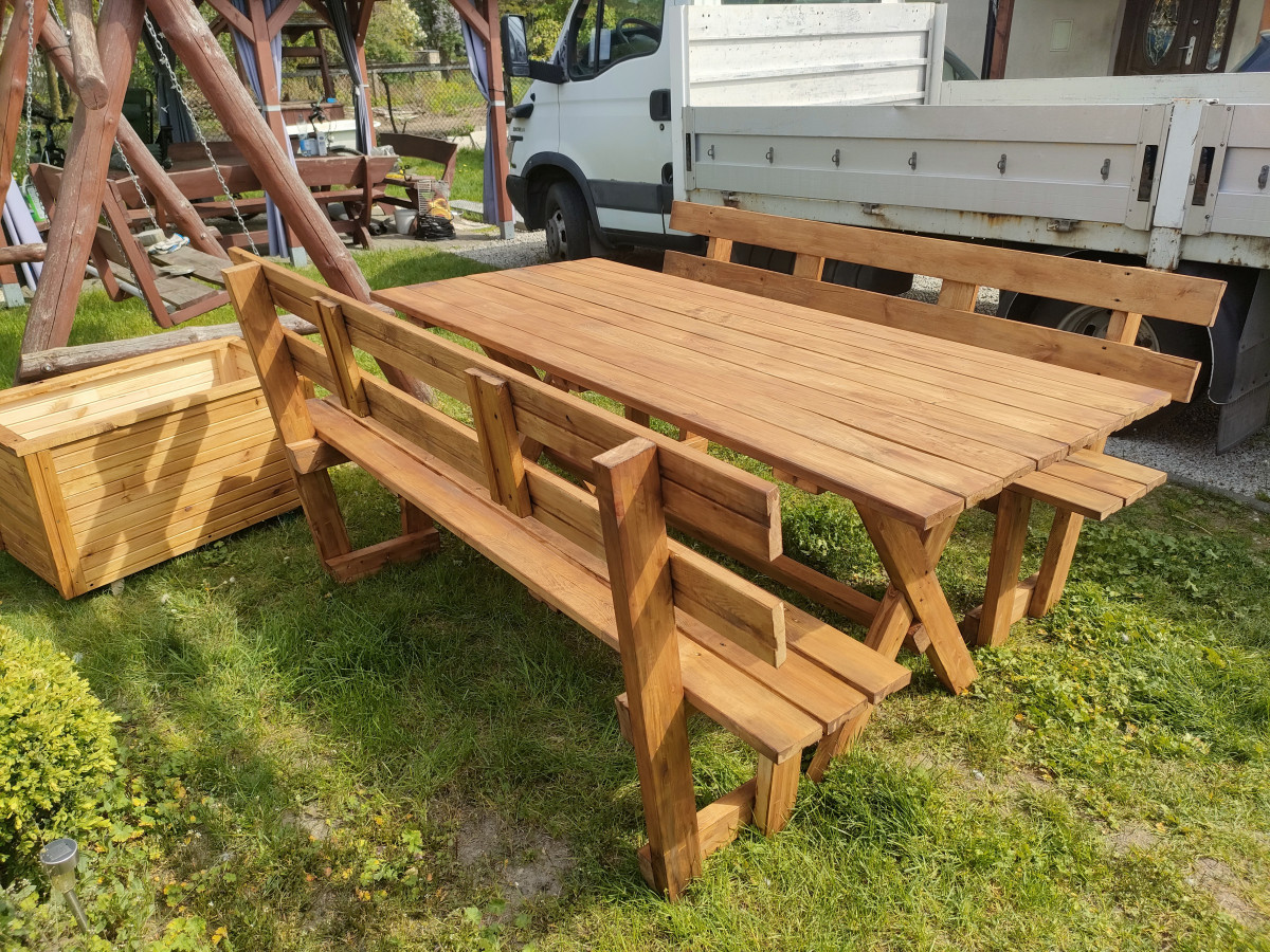 Witam. Posiadam nowy zestaw ogrodowy stół i dwie ławki 200/90.Możliwość transportu Mam jeszcze donice widoczną na zdjęciu za 150zl.. Zapraszam do oględzin na żywo i kontaktu 691219149.