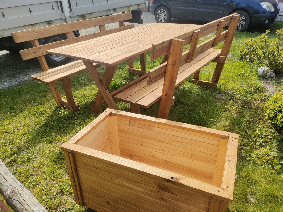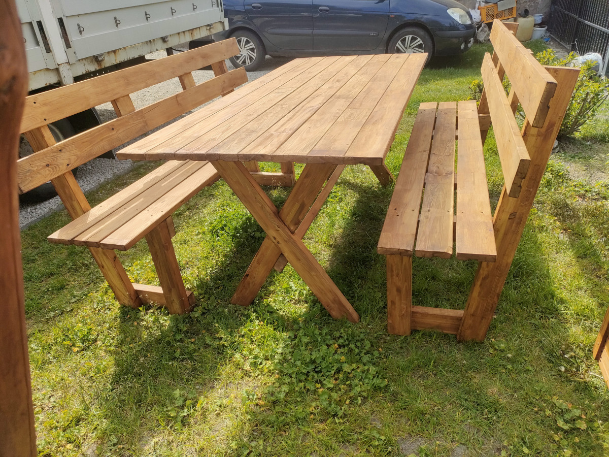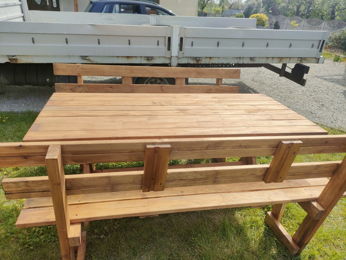 Witam. Posiadam nowy zestaw ogrodowy stół i dwie ławki 200/90.Możliwość transportu Mam jeszcze donice widoczną na zdjęciu za 150zl.. Zapraszam do oględzin na żywo i kontaktu 691219149.