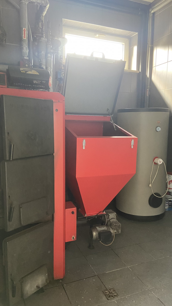 Własna kotłownia z piecem z funkcją spalania ekogroszku. Ekologiczna oczyszczalnia ścieków.