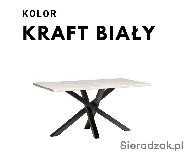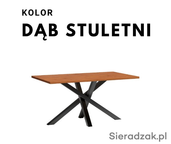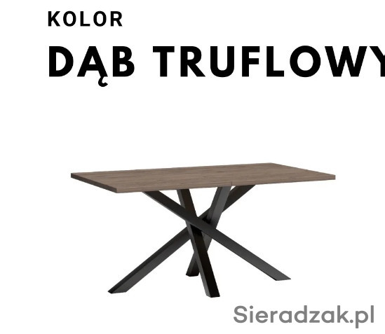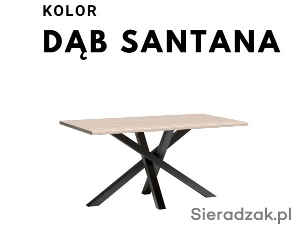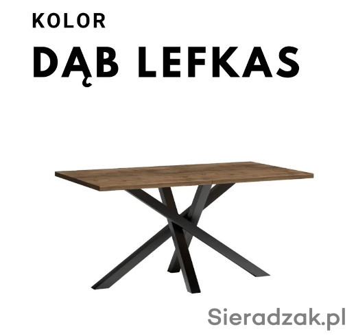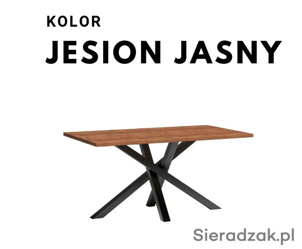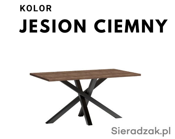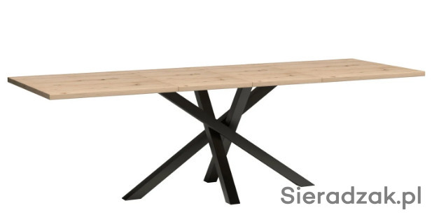Duży, rozkładany stół do jadalni, salonu. Nogi są wykonane z metalu, pomalowane proszkowo na czarny kolor. Stół przed rozłożeniem ma długość 160 cm. Może posłużyć jako duży stół na rodzinne okazję, gdzie zapraszamy większą liczbę osób. Korzystając z dołączonej wkładki (50 cm), możemy mieć duży mebel na rodzinne obiady i przyjęcia. Stół rozkłada się aż do rozmiaru 260 cm. Stół pasuje do nowoczesnych industrialnych, loftowych wnętrz, jaki i klasycznych wystrojów. Grubość blatu to 3,2cm.