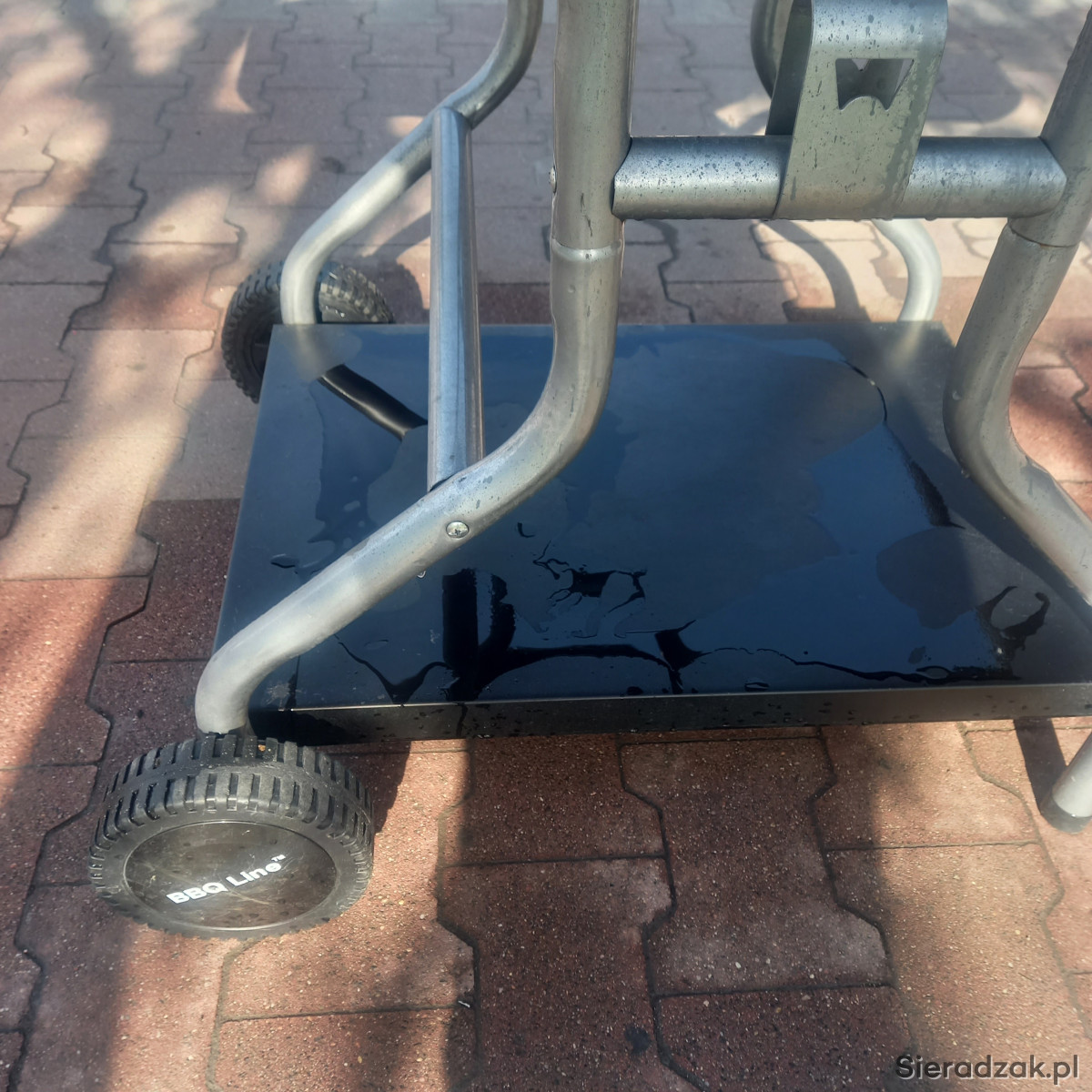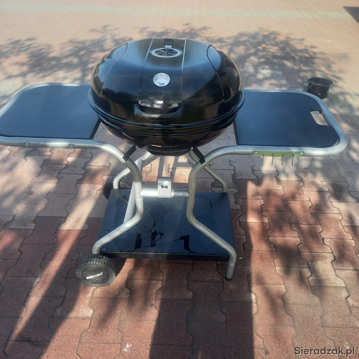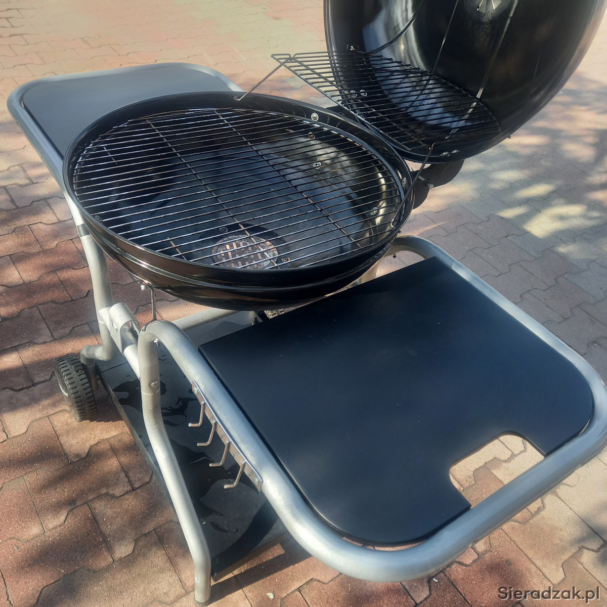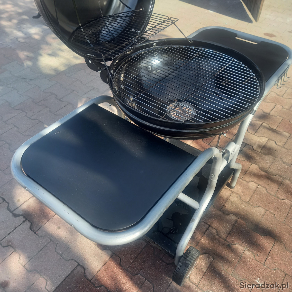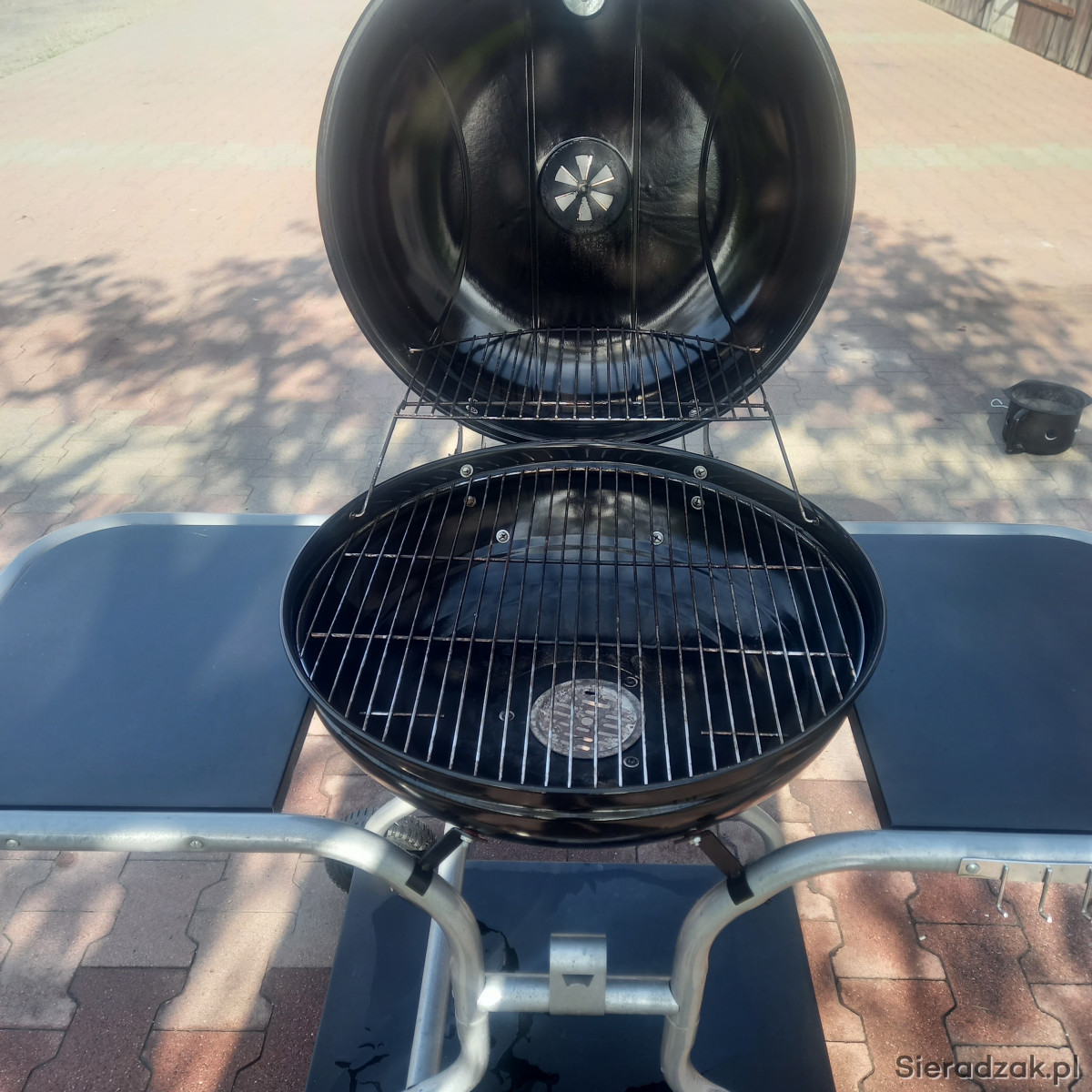 Gril węglowy okrągły, duży mocny i stabilny, wyposażony w dwie boczne i dolną półkę, stan bdb.( nie zniszczony, ani nie poprzepalany, mało używany)