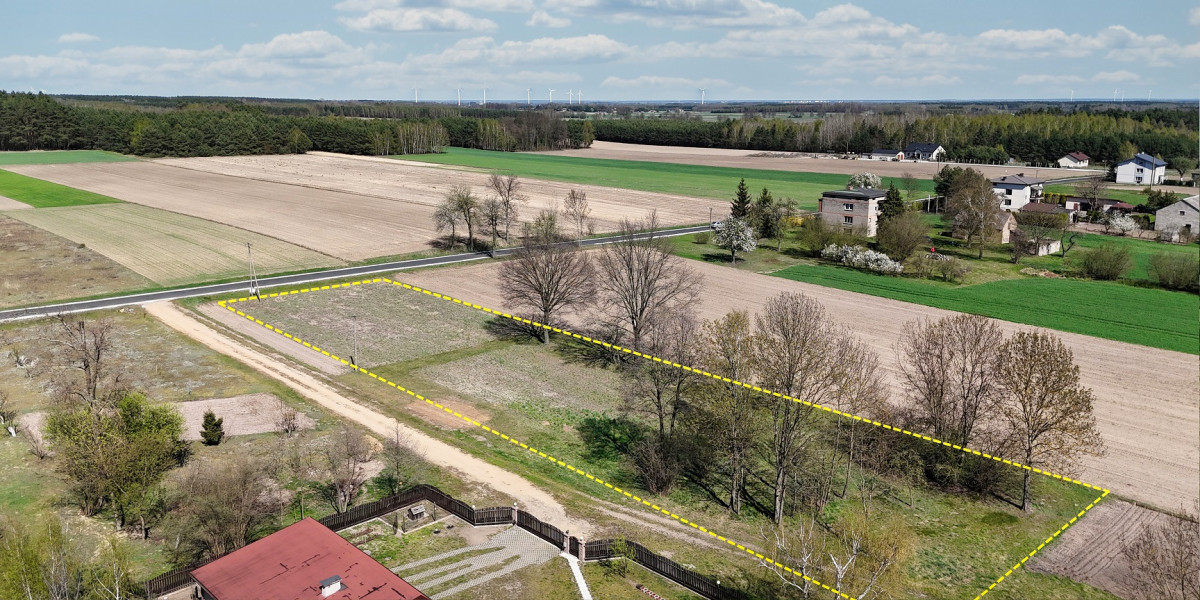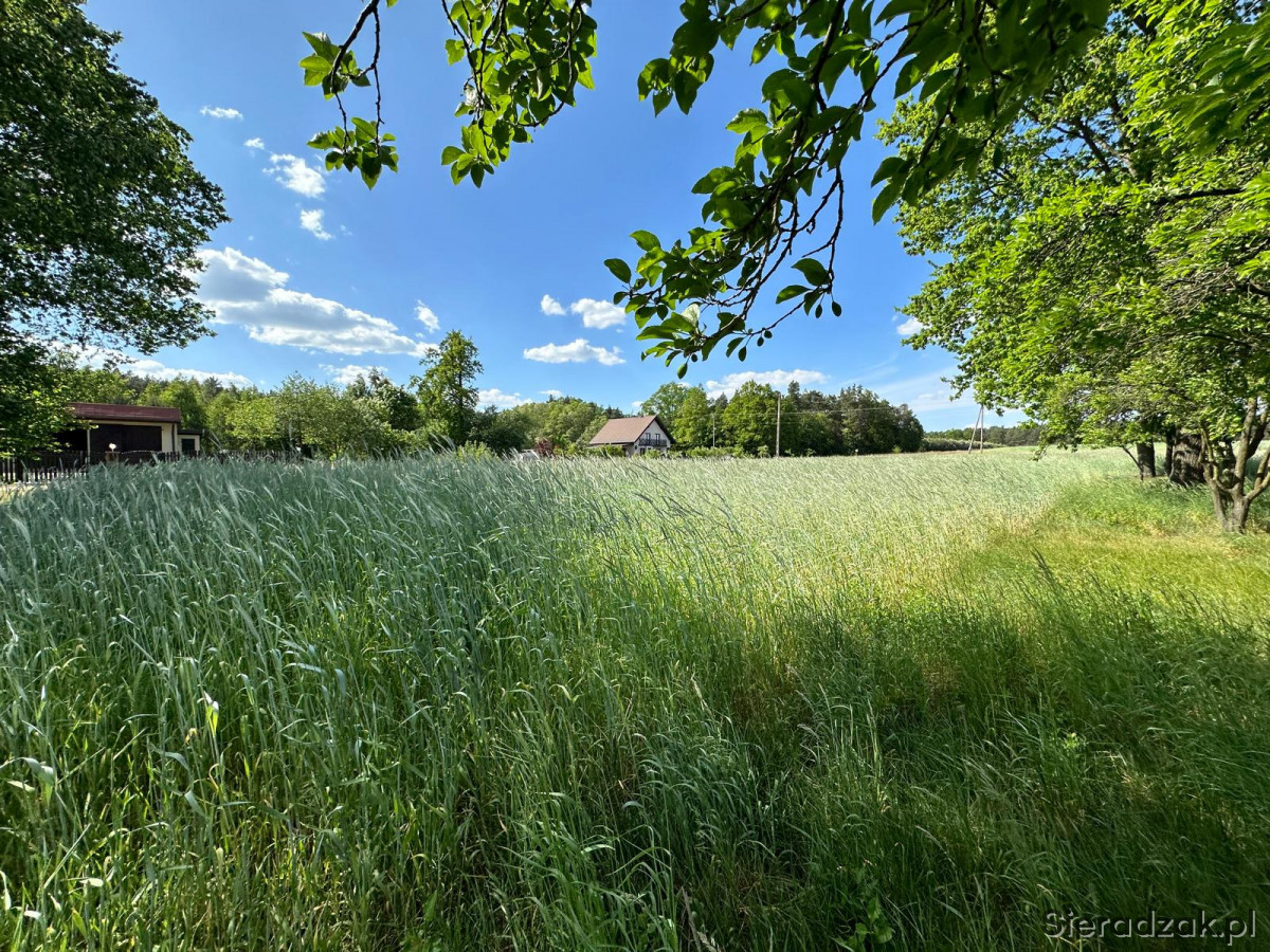 Działka o płaskim ukształtowaniu terenu z nasadzeniami drzew .