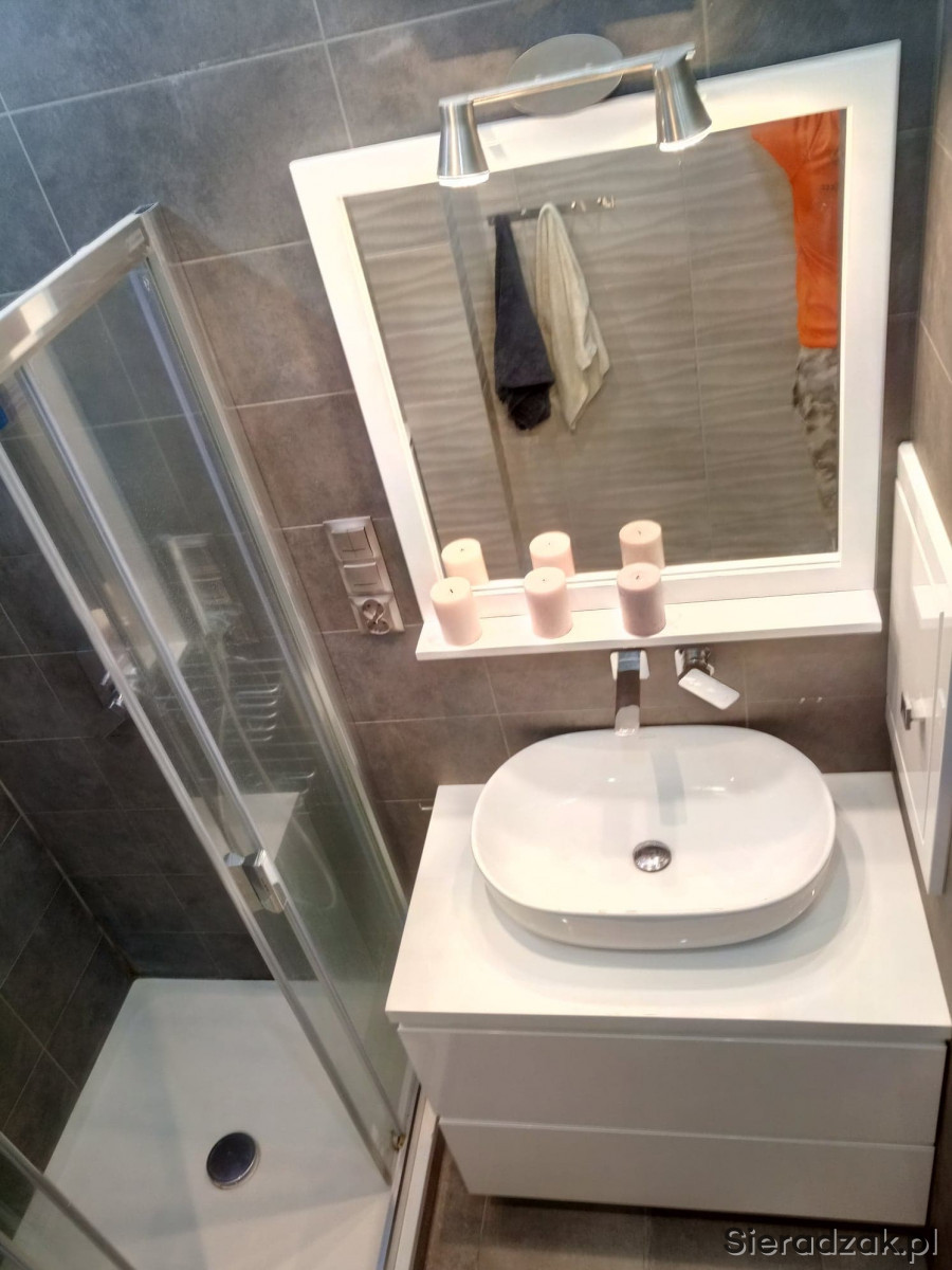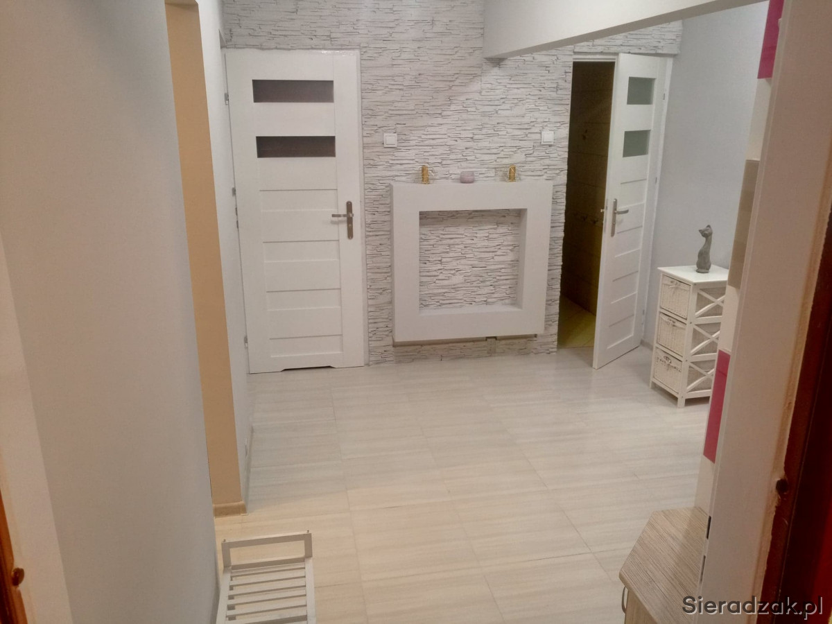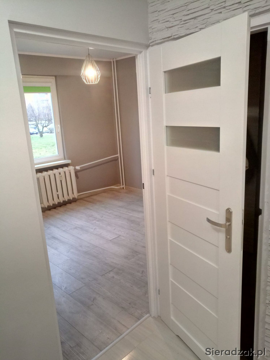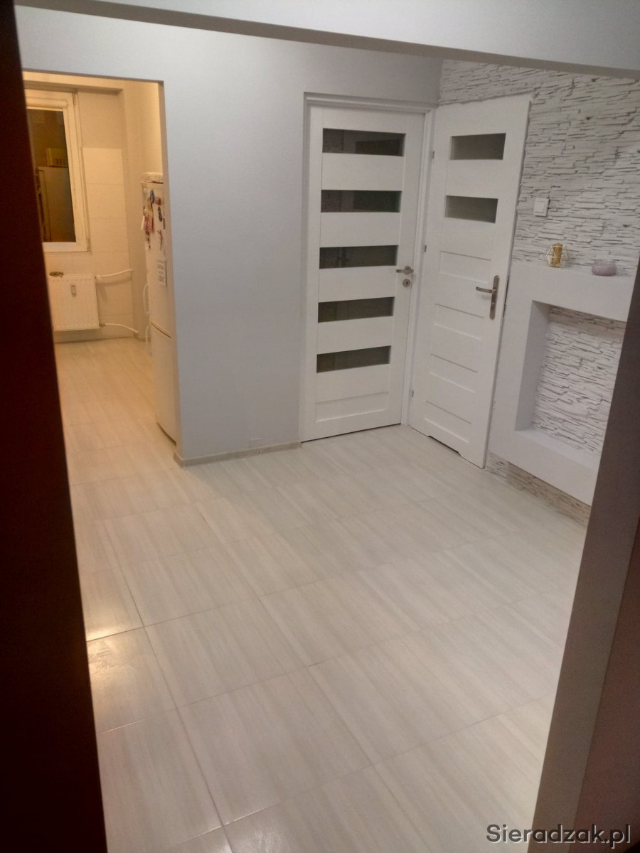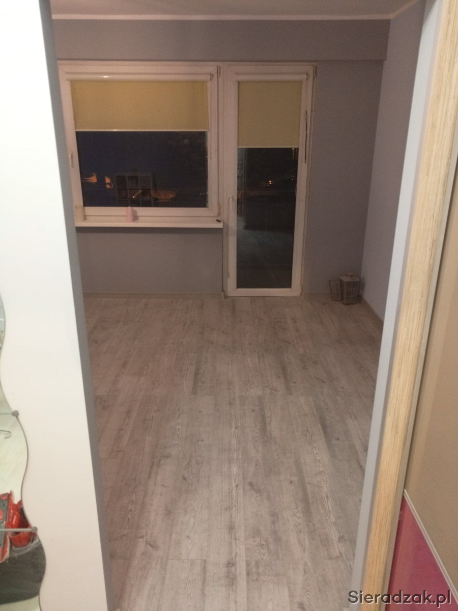 Nowe panele w pokojach oraz płytki w przedpokoju, kuchni łazience oraz w toalecie. Z głównego gniazda kablówki który znajduje się w przedpokoju zostały pociągnięte przewody TV w podłodze dzięki czemu nie trzeba specjalnie rozprowadzić ich po pomieszczeniach. Wymienione zostały również rolety we wszystkich oknach (odcienie szarości). Te zdjęcia są przed założeniem nowych rolet.