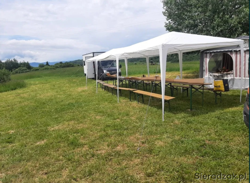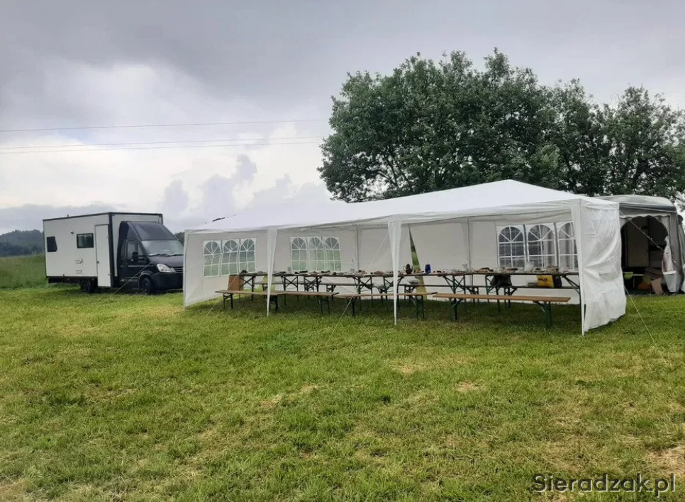 Oferuję do wynajęcia namiot imprezowy plenerowy wielkości 3x9m pomiesci ok 30-35 osób w zależności od ustawienia stołów. Ścianki boczne można dowolnie konfigurować w zależności od upodobania. Cena uzależniona jest od długości wynajmu i lokalizacji. Do ceny doliczany jest transport. Rozłożenie i złożenie w cenie wynajmu. Cena wynajmu za dobę 200 zł. Cena dotyczy samego wynajmu namiotu, bez transportu. Kontakt telefoniczny w celu ustalenia szczegółów, terminu i dostępności: 605-21-21-37