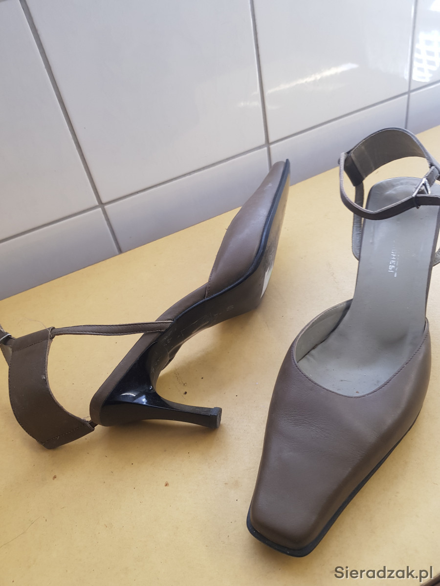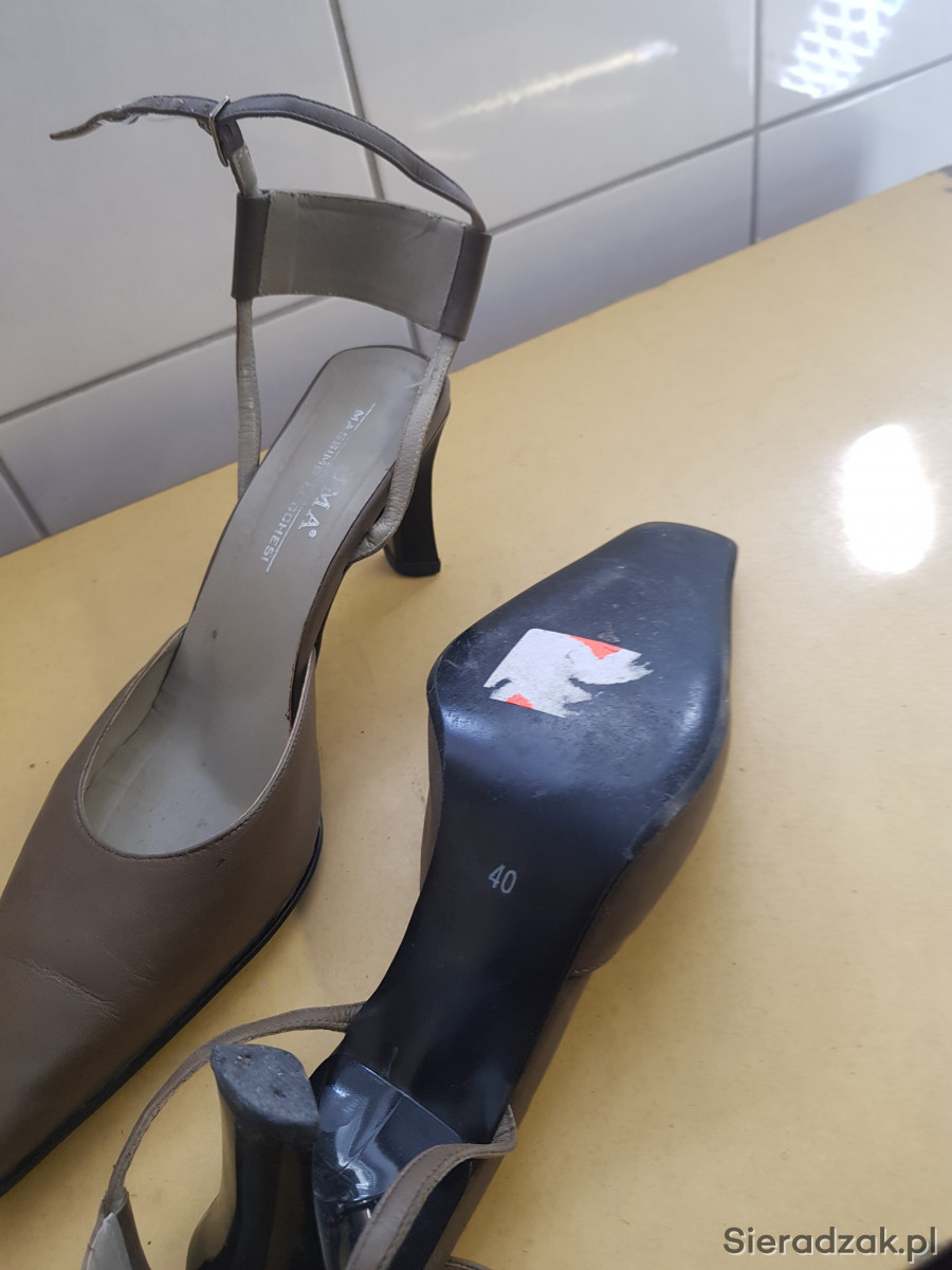 Sprzedam buty skórzane w kolorze oliwki, z odkrytą piętą, rozmiar 40. Cena 25zł.