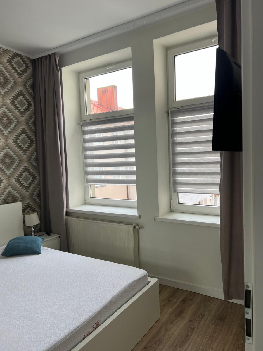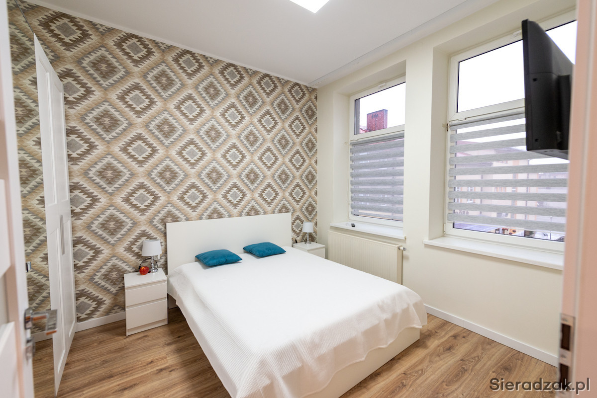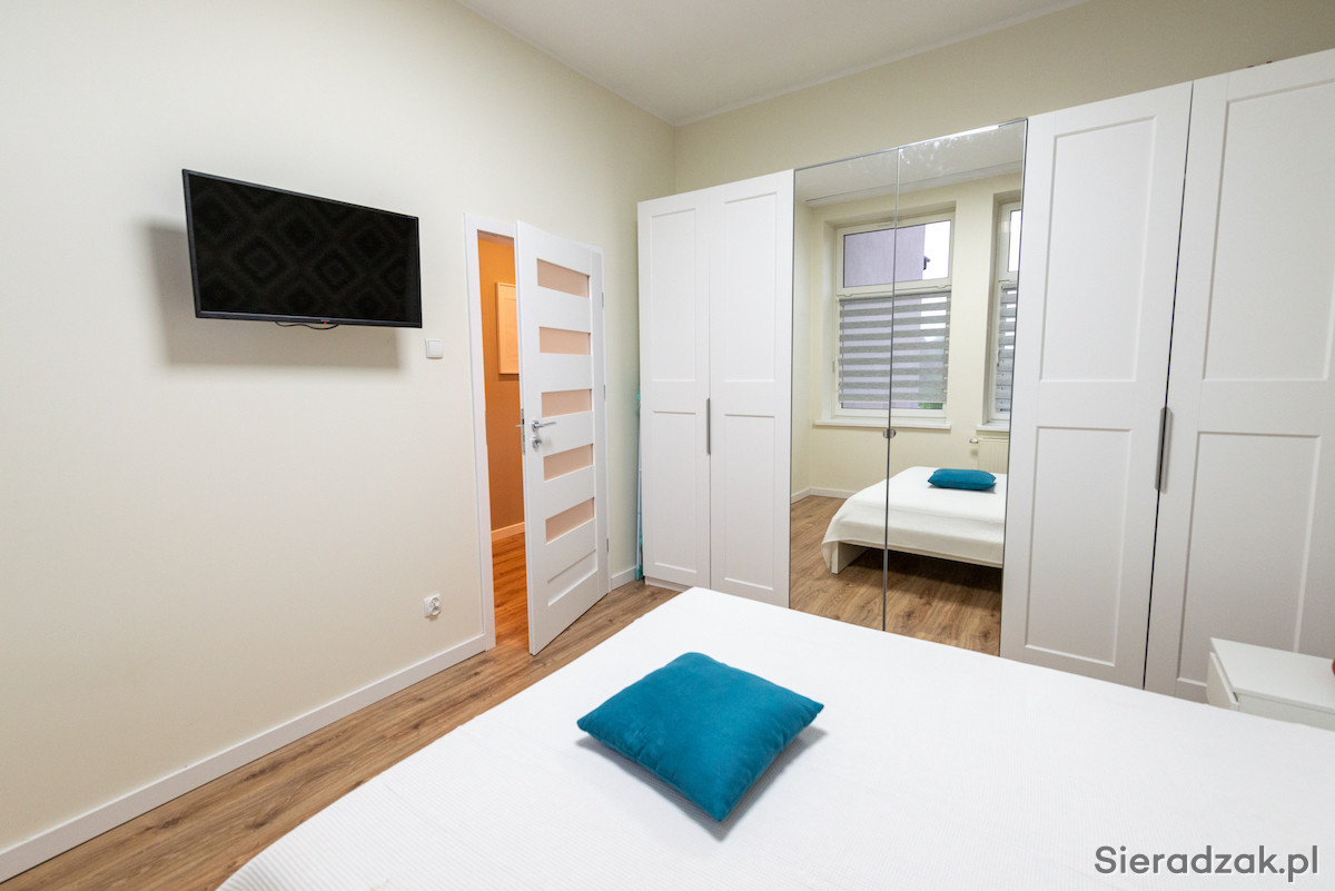 • sypialnia: łóżko 160 cm, duża szafa, telewizor, dodatkowo zasłony