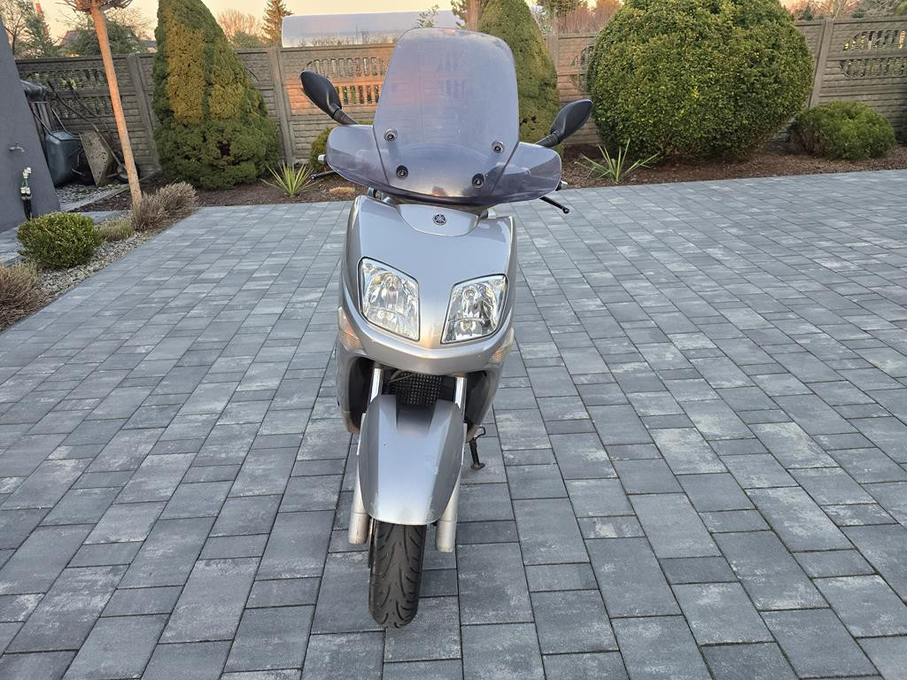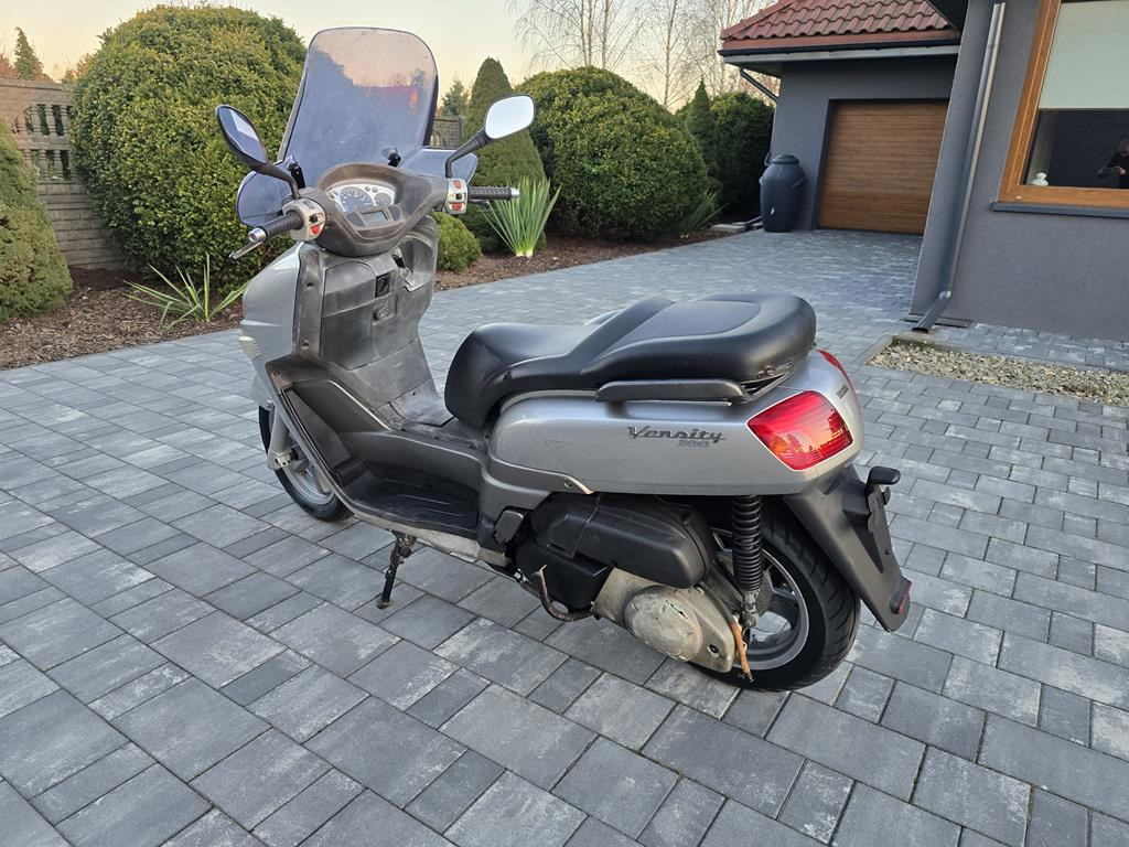 Do sprzedania Yamaha Versity 300 z 2003r. Skuter świeżo sprowadzony z Niemiec bezpośrednio od właściciela. Silnik odpala bez problemu zimny i ciepły. Wizualnie cały w oryginale. Posiada ślady użytkowania. Niedawno założone 2 nowe opony, nowy akumulator, nowa świeca, nowy filtr powietrza i wymieniony olej w silniku. Yamaha ma ważny niemiecki przegląd TUV do 06.2025r. Dodatkowo do skutera dokładam stelaż pod kufer centralny. Kupujący zwolniony z opłaty skarbowej. Zapraszam na oględziny i jazdę próbna. W ofercie posiadam inne skutery. Możliwość dowozu. Na więcej pytań chętnie odpowiem pod numerem telefonu 667-702-600.