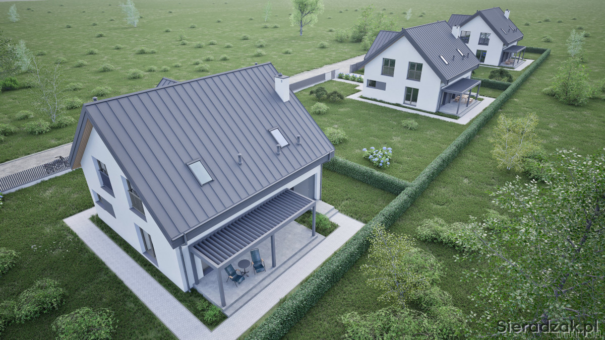 Domy posadowione zostaną na trzech odrębnych działkach o powierzchni 823 m2, 822 m2 oraz 824 m2. Działki mają bezpośredni dostęp do drogi gminnej oraz urządzonej drogi wewnętrznej.