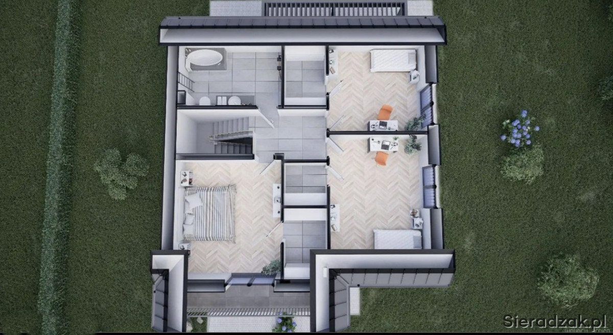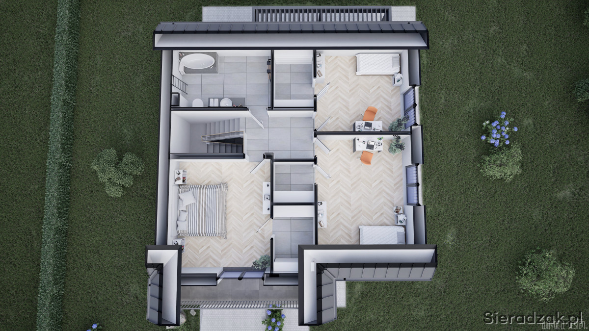 PIĘTRO: 3 pokoje sypialniane z możliwością przygotowania indywidualnych garderób oraz duża łazienka
