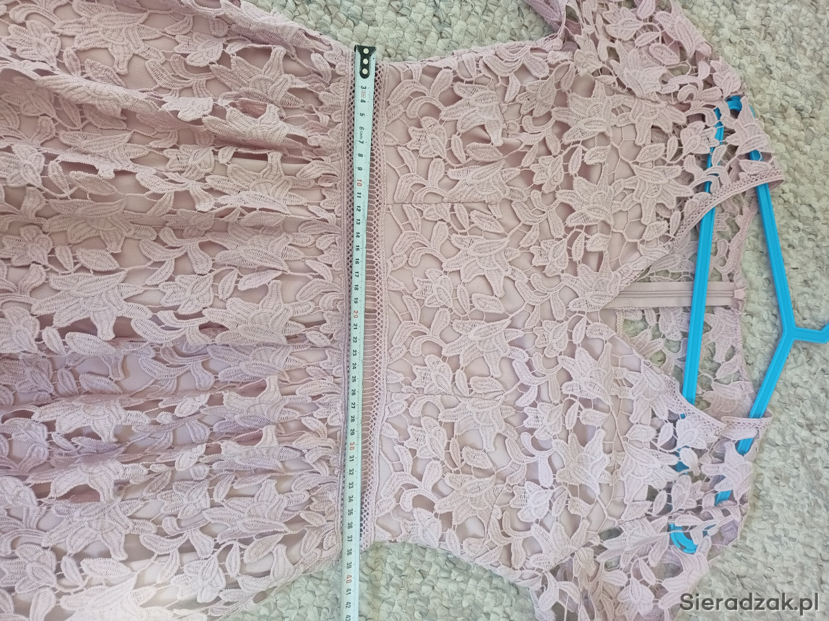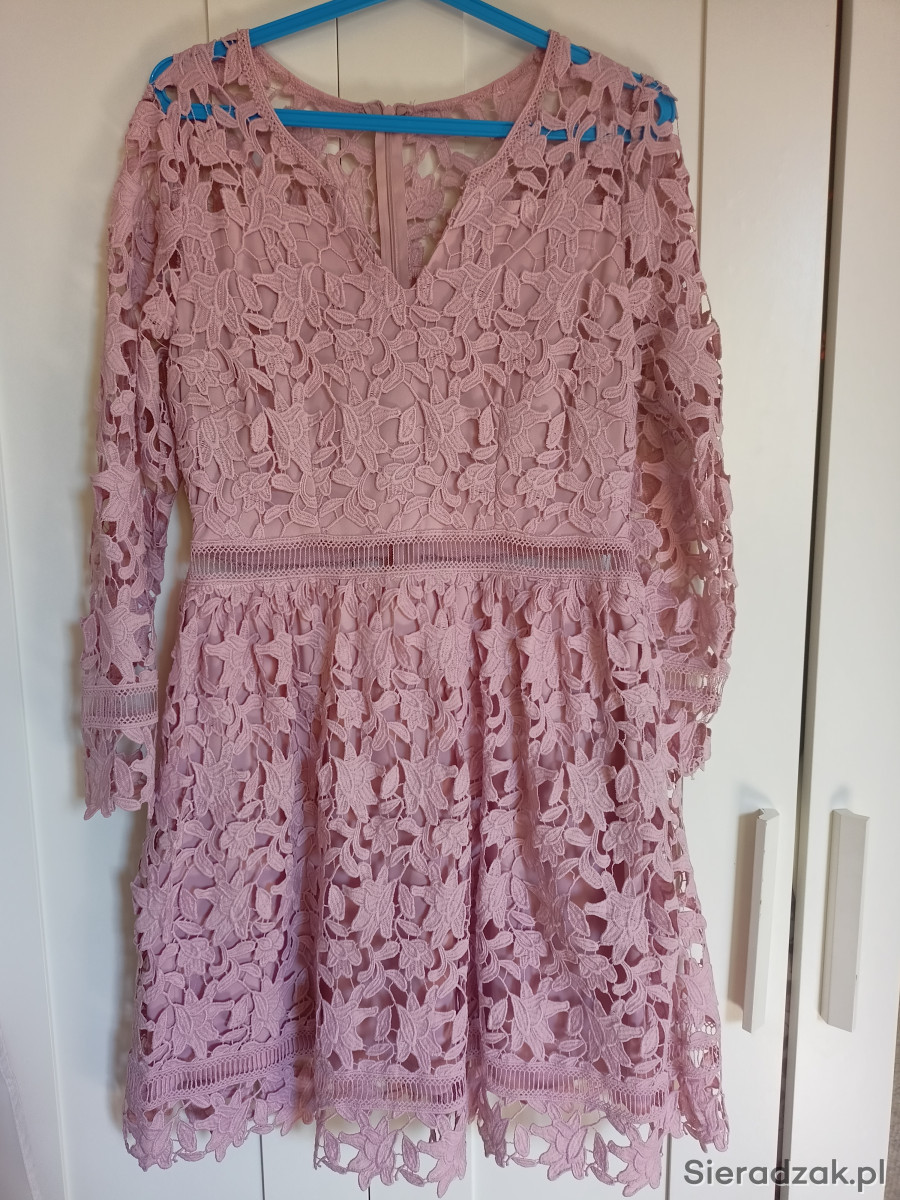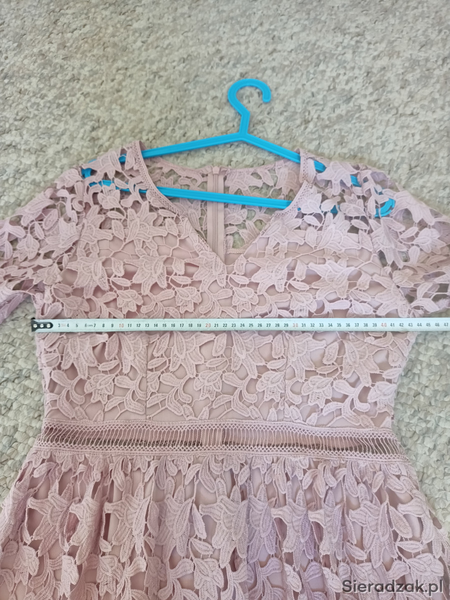Sukienka na różne okazje w pięknym kolorze pudrowego różu. Założona jeden raz. Rozmiar 38/40.