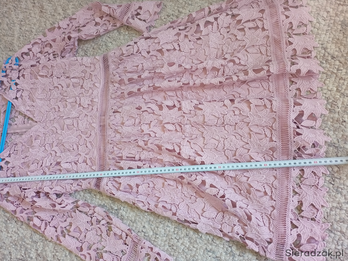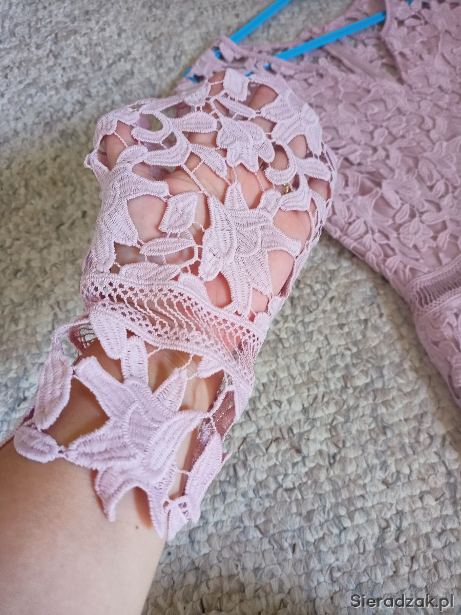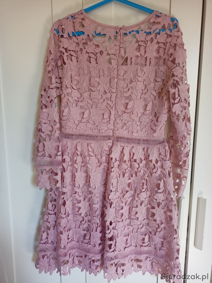 Sukienka na różne okazje w pięknym kolorze pudrowego różu. Założona jeden raz. Rozmiar 38/40.