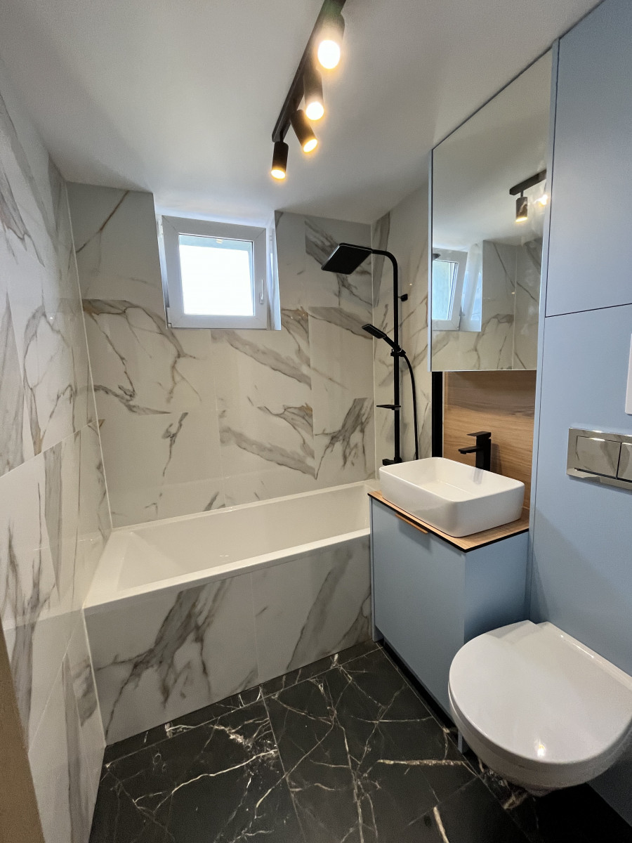 2.Łazienka z prysznicem i wanną, toaletą, umywalką oraz zabudowa .
