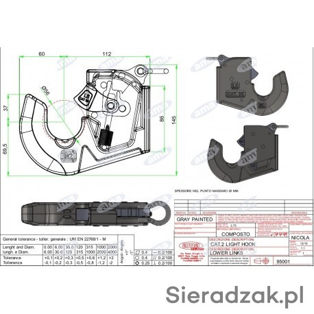 Hak do wspawania kat. 2S nowym z zabezpieczeniem - zastosowanie do 100 KM (75KW)
