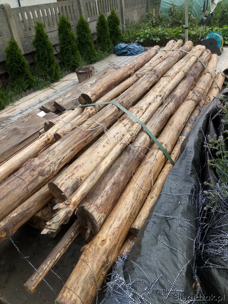 Sprzedam materiał na budowę altany ogrodowej. Belki okorowane, sezonowane. Słupy szt 8 ok 20cm średnicy, długości ponad 3 metry, reszta 3-4 metry długości, a średnicy od 10cm do 18cm. Belek jest dużo, wystarczy na budowę dwóch altan, lub kilka huśtawek. Całość ma ok. 3,5metra sześciennego. Dla kupującego dorzucam kilka kantówek 12X12 i deski widoczne na zdjęciach, miły dodatek do oferty to czerwona kostka polbruk pod altanę ok. 30m3 grubość 4cm. Zapraszam do obejrzenia i zakupu, bo warto!!!