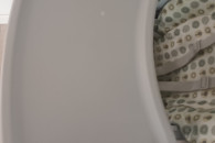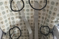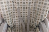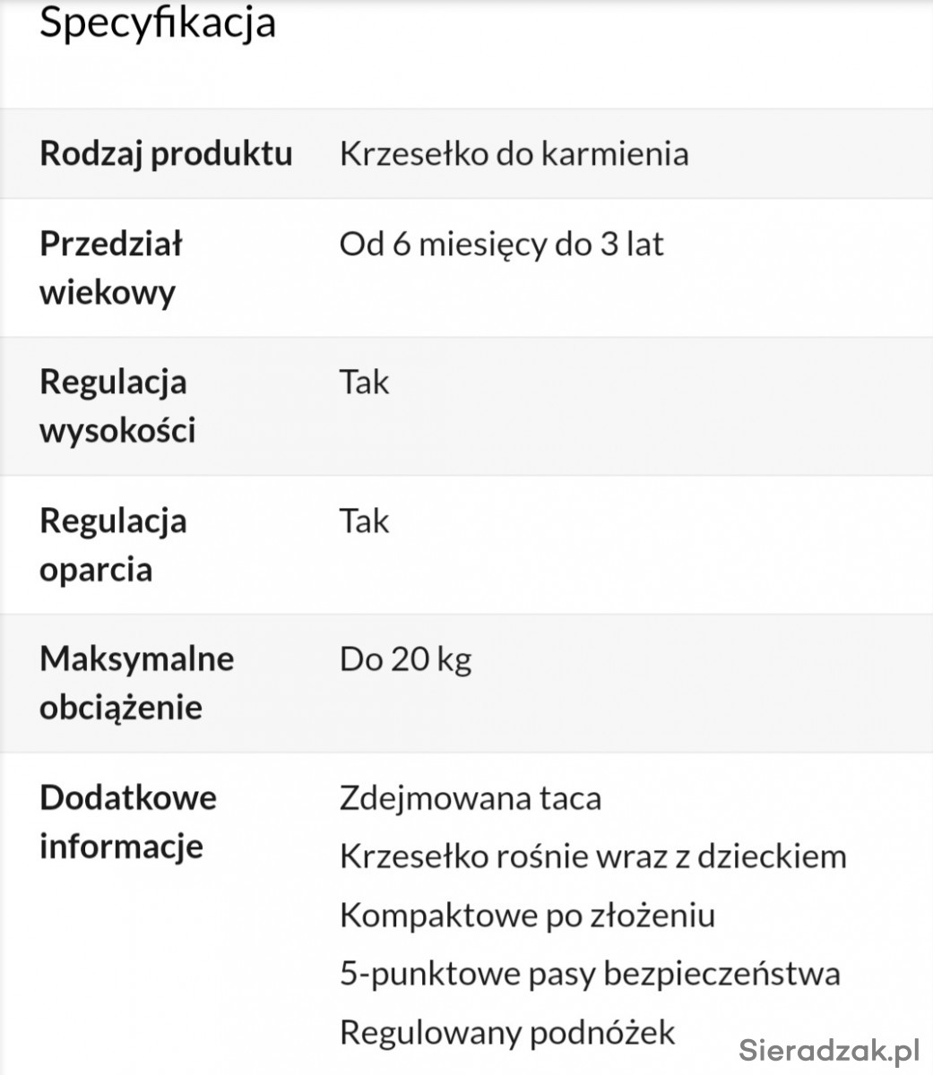 Krzesełko w dobrym stanie (na tapicerce są lekkie rozdarcia zaznaczone na zdjęciu oraz na tacce jest biała kropka jednak w żaden sposób nie przeszkadza to w normalnym funkcjonowaniu). Kolor szary jest malo brudzący, pasuje zarówno dla dziewczynki jak i chłopca.