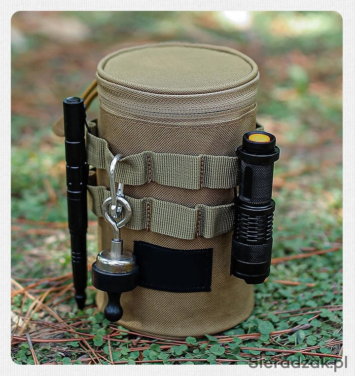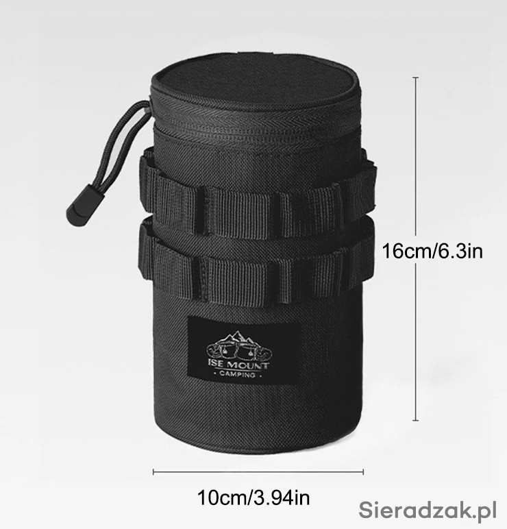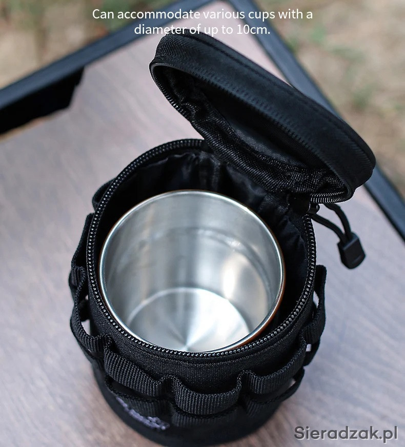 Taktyczna wielofunkcyjna torba posiada szeroki otwór, zmieści różne kubki lub butelki o średnicy do 10 cm i wysokości do 16 cm.