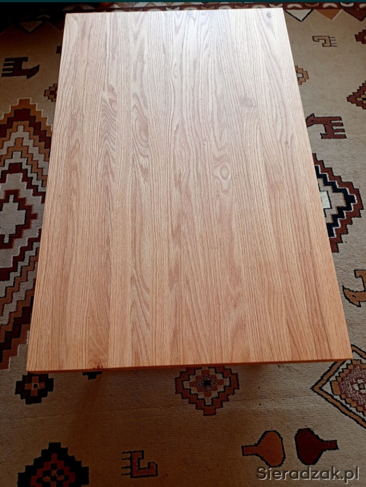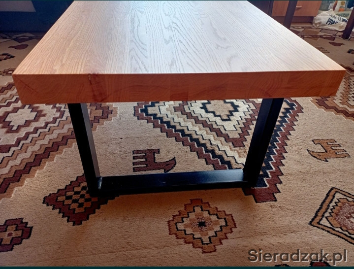 Sprzedam nowy stolik kawowy z litego dębu czerwonego. Wymiary blatu 100x64 cm wysokość 46 cm. Blat klejony, szczotkowany i zaolejowany o grubości 6 cm. Nogi metalowe w czarnym macie. Możliwość dowozu
