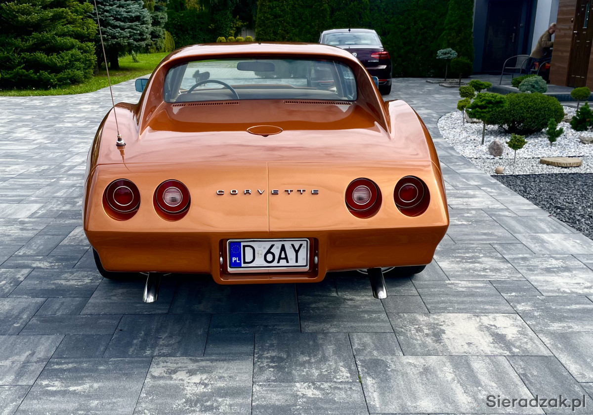 Do sprzedania corvette c3 1974 5.7 , doinwestowana , lakier idealny , odnowiony w profesjonalnym zakładzie trudniącym sie zabytkami - posiadam zdjęcia z procesu renowacji , bardzo dużo nowych częsci , z ważniejszych rzeczy ; kompletne dywany , uszczelki drzwi i szyby , mechanizm obrotomierza , łączniki stabilizatora przód+tył , linki hamulca ręcznego + klocki , gumy ramy , klamki i lusterka , tylne lampy , wskaźnik poziomu paliwa znajdujący się w baku , aparat zapłonowy , przewody , świece , paski klinowe , silnik uszczelniony , powymieniane uszczelki , olej w silniku + filtr VALVOLINE MAX LIFE , olej +filtr skrzyni biegów , płyny eksploatacyjne , komora silnik odnowiona - idealna , wnętrze w super stanie poddane detailingowi , fotele oryginał , podnoszenie lamp zregenerowane , opony idealne , rama zdrowa , spód zachowany w bardzo ładnym stanie -zdjęcia , elektryka sprawna , działa każde podświetlenie wnętrza , zegarek i radio sprawne , silnik pracuje bardzo ładnie , skrzynia zmienia biegi płynnie , zawieszenie bez luzów , hamulce sprane , jako ciekawostka corvette posiada oryginalny alarm, załączany kluczykiem po przekręceniu zamka znajdującego sie w lewym przednim błotniku ,numer silnika zgodny z numerem VIN , auto jest moją własnością użytkowane weekendowo , do spokojnej jazdy , mozliwość sprawdzenia na stacji diagnostycznej , real foto , auto odrestaurowane profesjonalnie z dbałością o szczegóły , pozdrawiam ,