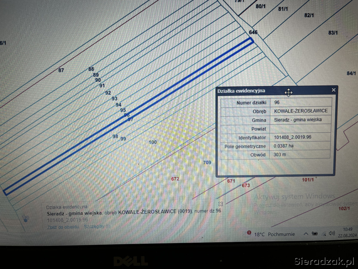 Do sprzedania działka rolna Nr 96 położona wsi Kowale, o powierzchni 0,0387 ha. Działka posiada bezpośredni dojazd z drogi asfaltowej przebiegającej przez wieś Kowale. Wymiary działki 4 m x 97 m. Cena 5.000,00 zł.