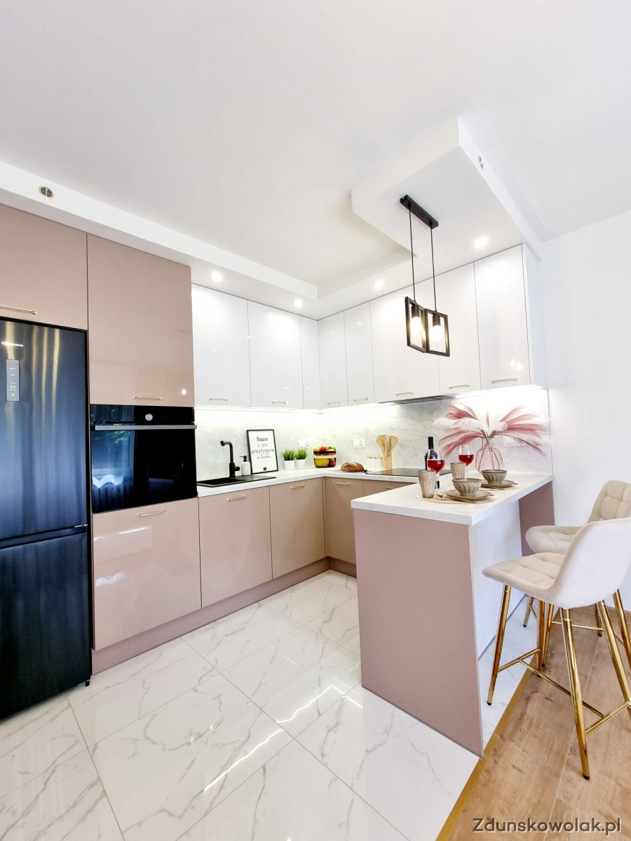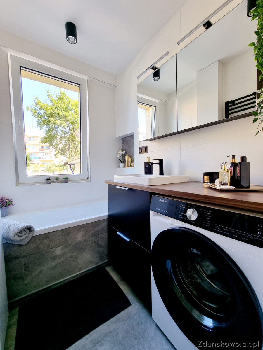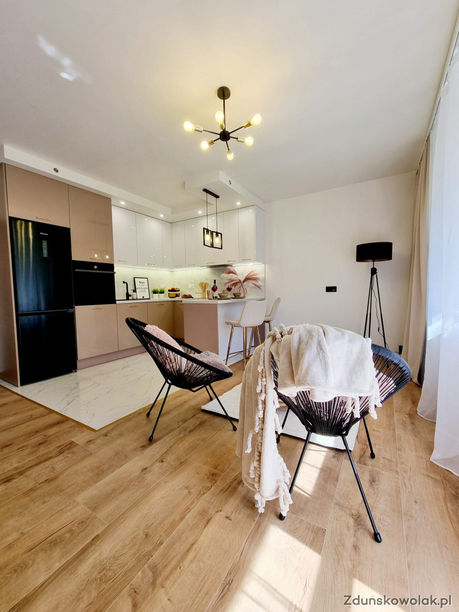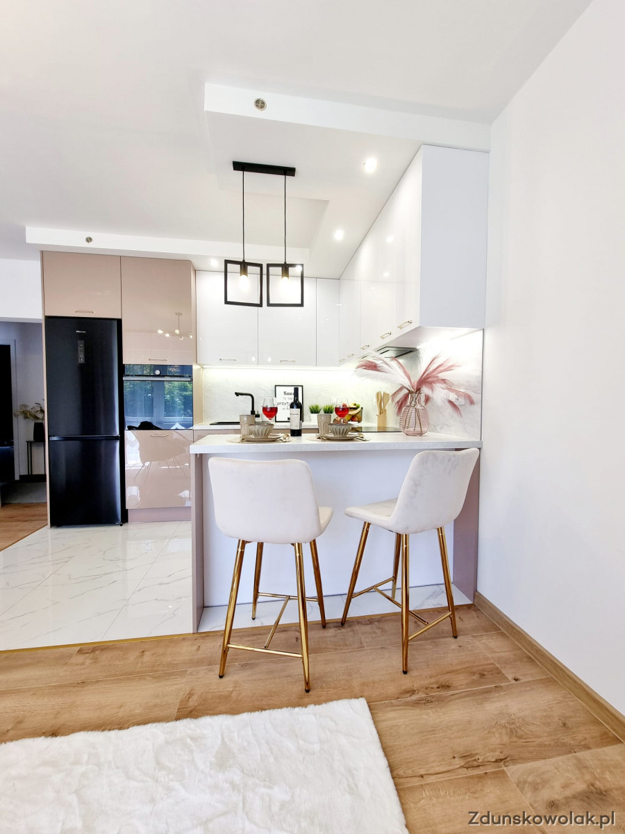 W skład mieszkania wchodzą dwie sypialnie, salon z aneksem kuchennym, łazienka oraz osobna toaleta. Kuchnia została zaprojektowana na wymiar, z nowymi meblami oraz sprzętem AGD objętym gwarancją. Nowoczesna glazura i terakota podkreślają elegancję wnętrza, a nowe podłogi dodają mu ciepła i przytulności. Dodatkowym atutem mieszkania jest balkon typu loggia, idealny na poranną kawę lub chwilę relaksu na świeżym powietrzu. Mieszkanie jest bardzo funkcjonalne – posiada także okno w łazience, które zapewnia naturalne doświetlenie i wentylację.
