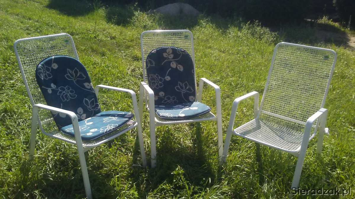 sprzedam 3 metalowe stabilne mocne krzesla ogrodowe cena za 3sztuki za dramo 2 poduszki zapraszam