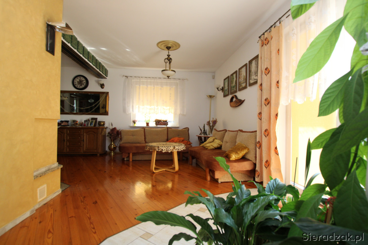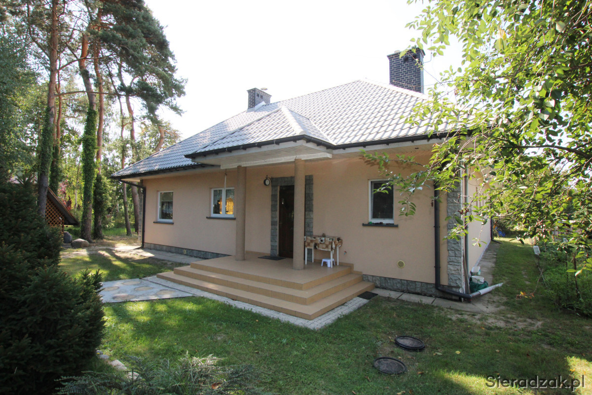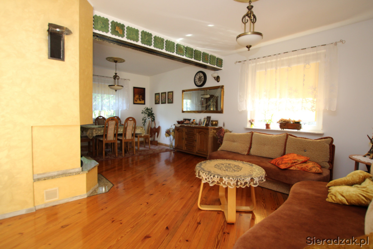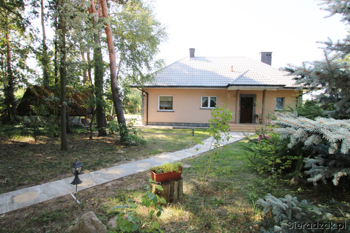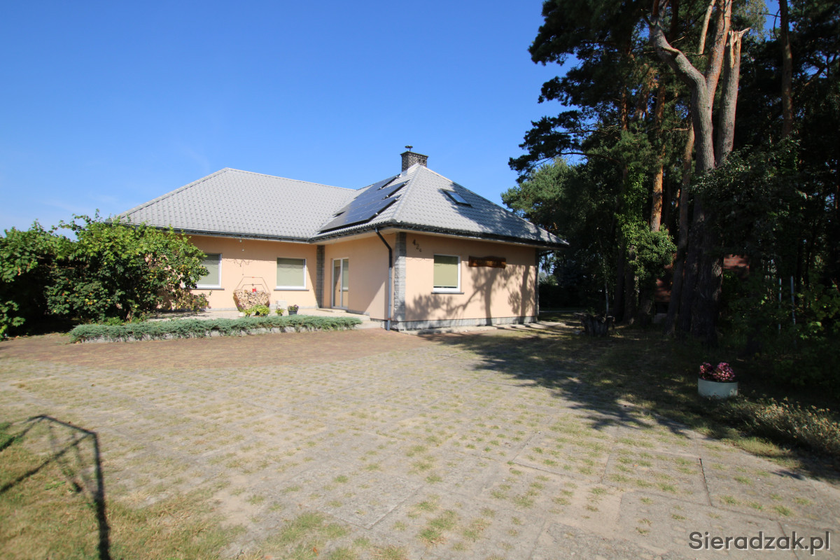 Sieradzkie Biuro Nieruchomości oferuje na sprzedaż jednorodzinny, wolnostojący dom mieszkalny parterowy z użytkowym poddaszem położony w spokojnej i lubianej okolicy.