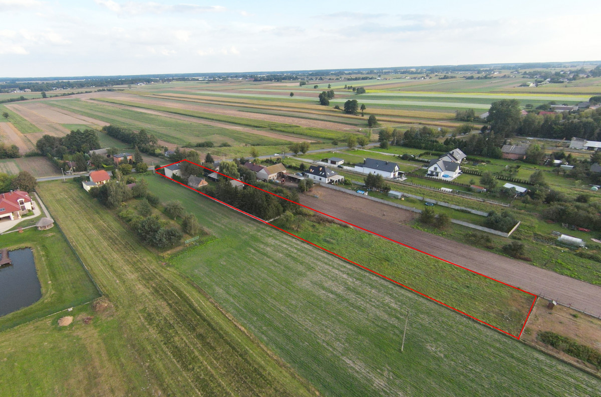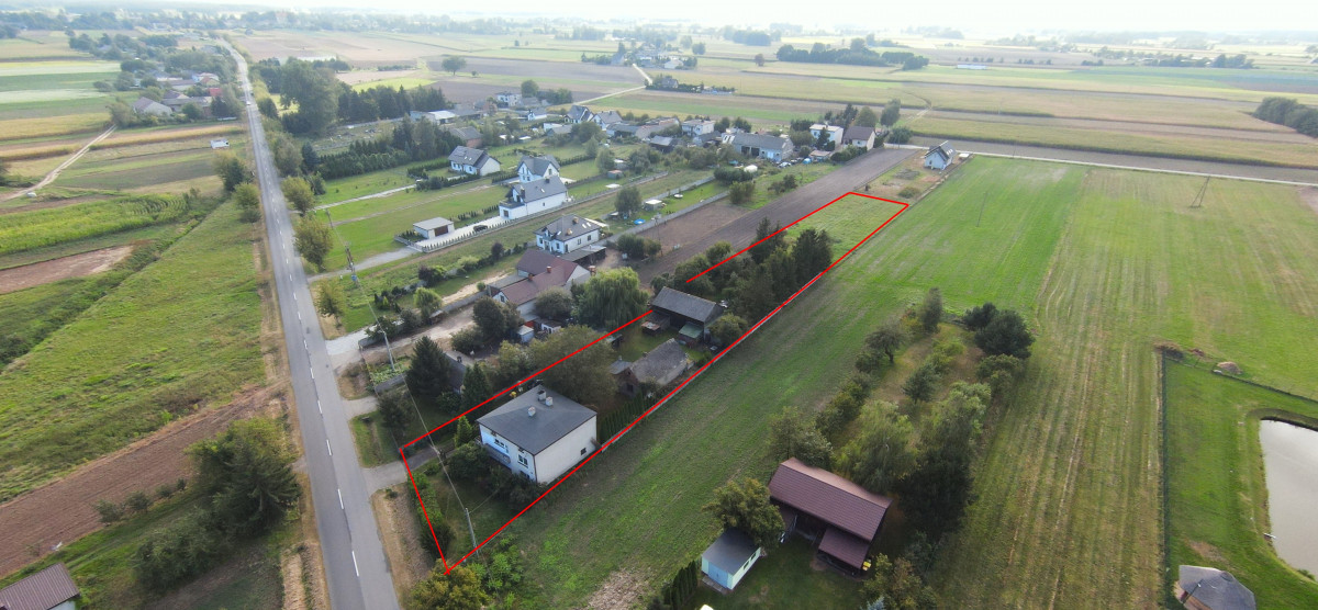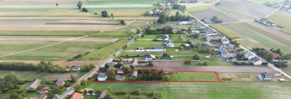 Działka o powierzchni 0,4092 m2 o szerokości frontowej 23,83 m. Większa część działki została ogrodzona płotem betonowym oraz siatką. Przód działki zagospodarowany bramą wjazdową wraz z furtką.