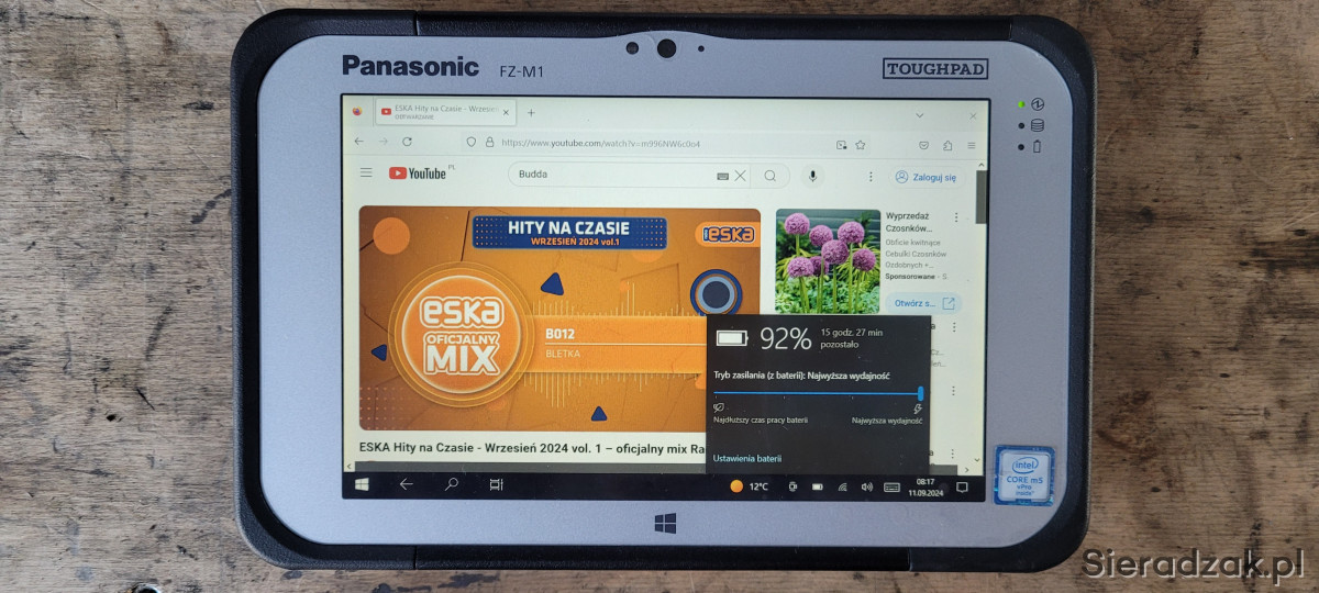 Przykładowy czas pracy na bateri :włączone wifi muzyka z internetu i podświetlony ekran około 6 godzin . Ja go długo nie używałem bo jest dla mnie za mały i dlatego sprzedaję .