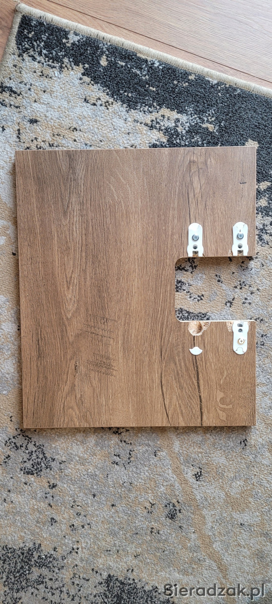 Dolna półka bez jednego uchwytu mimo tego trzyma się na swoim miejscu bez problemu .