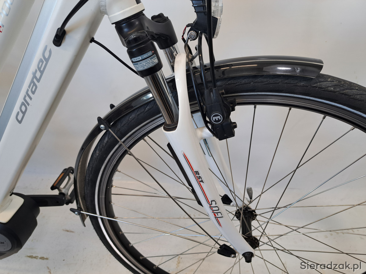 rama aluminium 6061 18" 46cm,przerzutka w tylnej piaście NuVinci N360,manetka z płynną zmianą przełożenia,hamulce hydrauliczne magura hs11,amortyzator rst,oświetlenie led axa zasilane z akumulatora,siodełko corratec z amortyzowaną sztycą podsiodłową,wspornik kierownicy regulowany.stan techniczny i wizualny bardzo dobry.