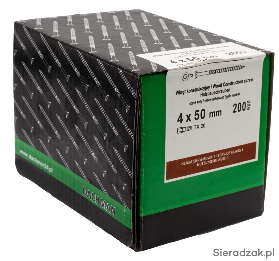Wymiary wkręta: 4x50 średnica wkręta: 4mm długość wkręta: 50mm średnica łba: 9mm rodzaj łba: TORX 20 materiał: stal hartowana ocynkowana galwanicznie ilość: 200 szt/op.