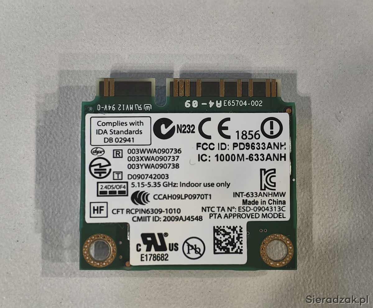 Witam, mam do sprzedania kartę sieciową Intel 633 ANHMW 2,4 GHz w pełni sprawną zdemontowaną z laptopa Samsung 370R5E z powodu wymiany na kartę 5 GHz z bluetooth możliwy odbiór osobisty lub wysyłka proszę pisać pozdrawiam i zapraszam również na inne moje aukcje.