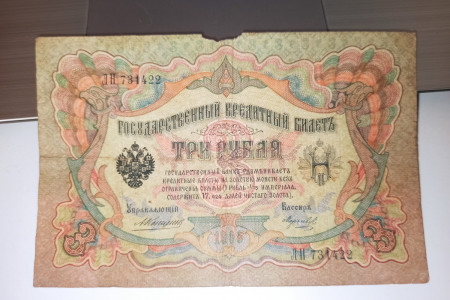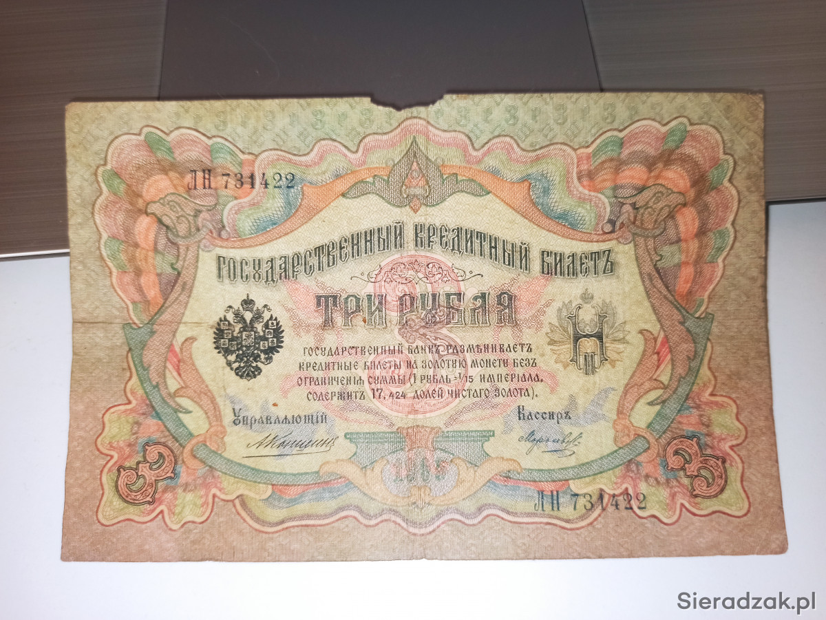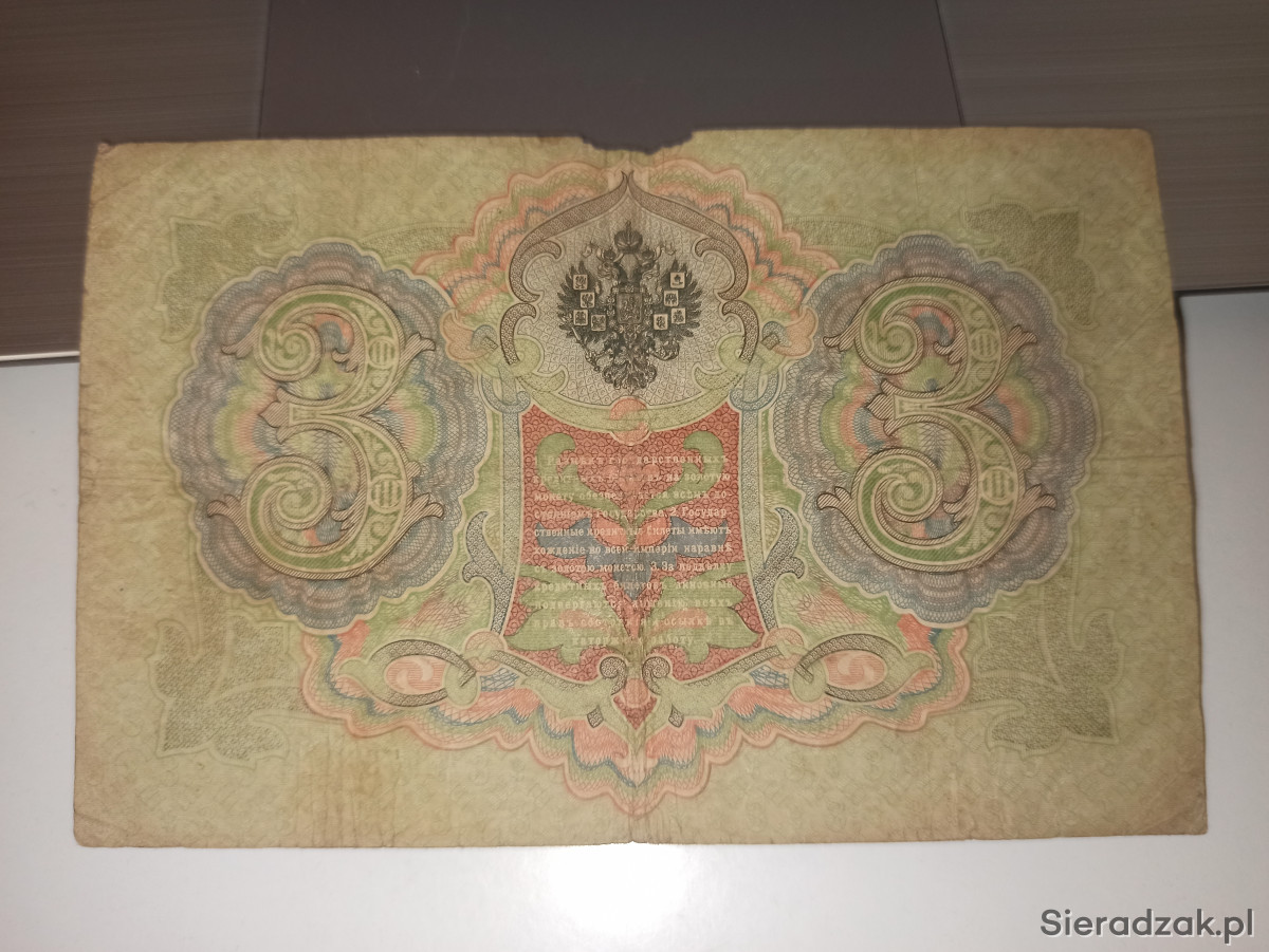 Sprzedam banknot Rosyjski 3 ruble z 1905 roku.