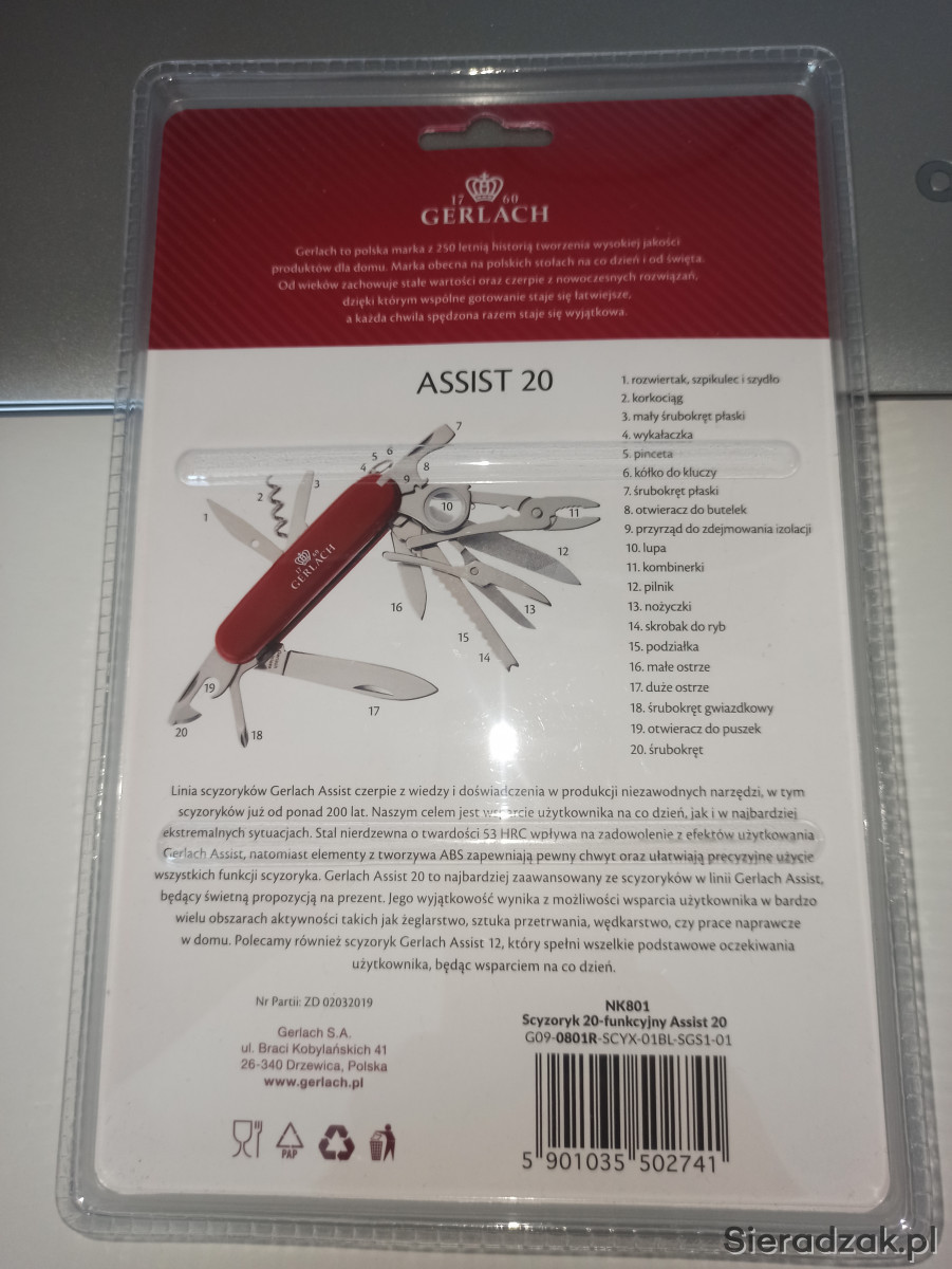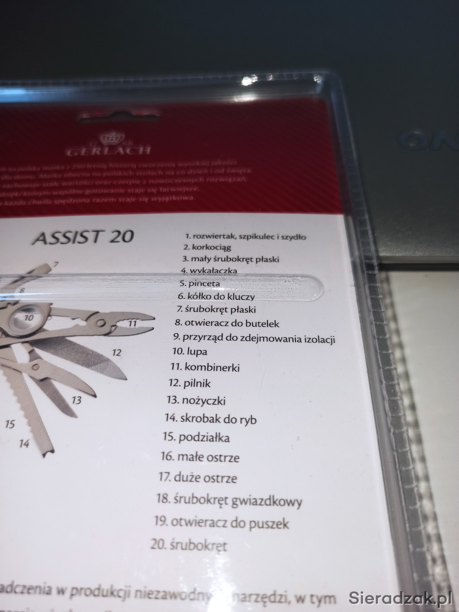 Sprzedam scyzoryk wielofunkcyjny Gerlach Asist 20. Scyzoryk posiada 20 funkcji. Nowy, oryginalnie zapakowany.