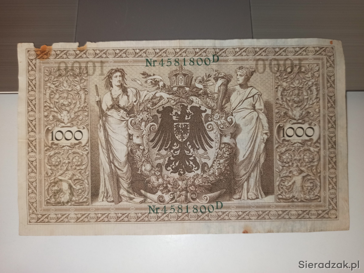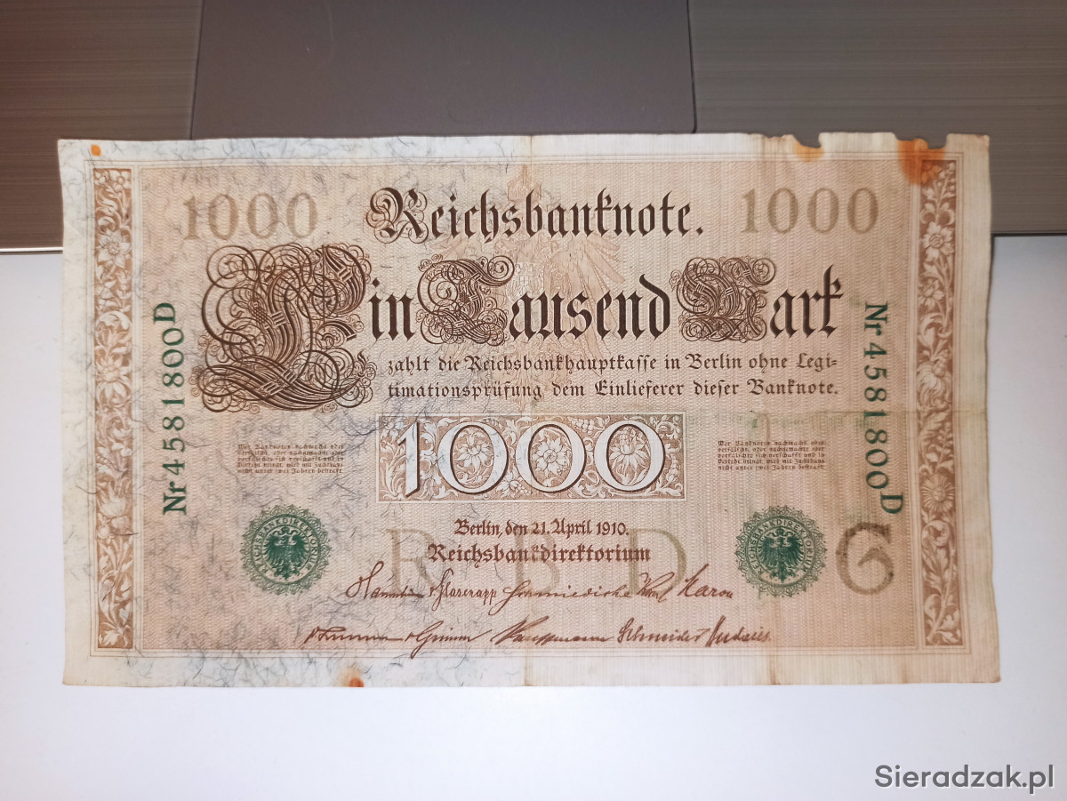 Sprzedam banknot Niemiecki 1000 marek z 1910 roku.