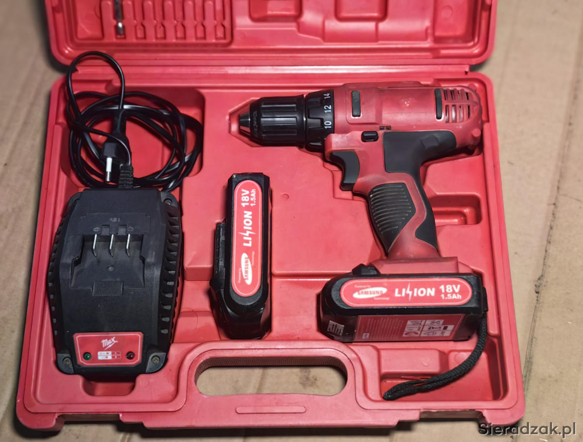 Witam, mam do sprzedania wiertarko wkrętarkę firmy Max 18 V na akumulatorach Samsung 1,5 Ah dwie sztuki plus ładowarka w zestawie wszystko, co daje producent oprócz kilku bitów, które się zgubiły akumulatory w pkratyvce mają 20 V sprzedaje, ponieważ zmieniłem na system Einhell X-Change stan bardzo dobry używany sporadycznie do wkrętów cena do negocjacji możliwa wysyłka lub odbiór osobisty proszę pisać pozdrawiam i zapraszam również na inne moje aukcje.