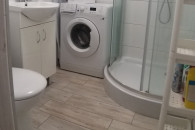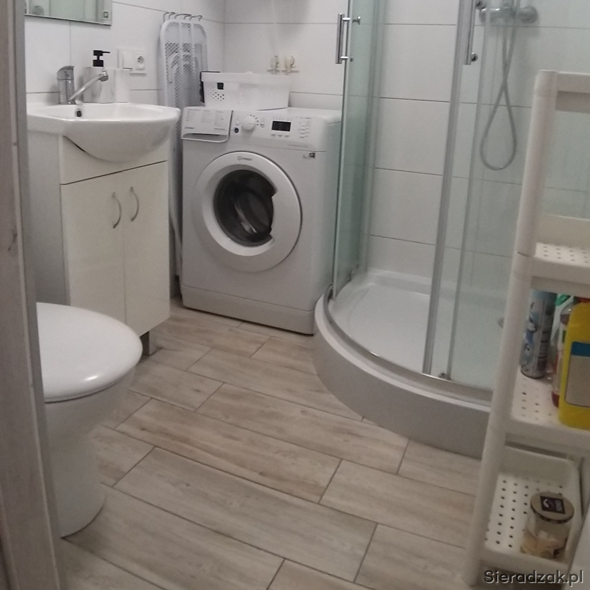 Mieszkanie posiada łazienkę z prysznicem i pralką,