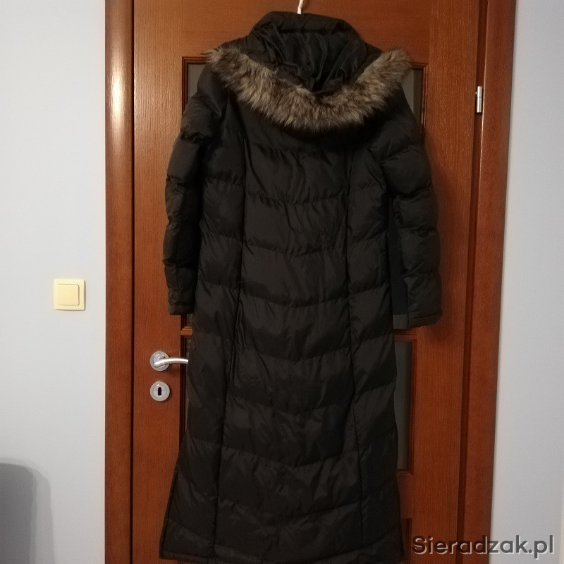 Kurtka puchowa czarna zimowa damska - płaszczyk z kapturem