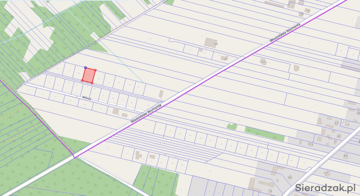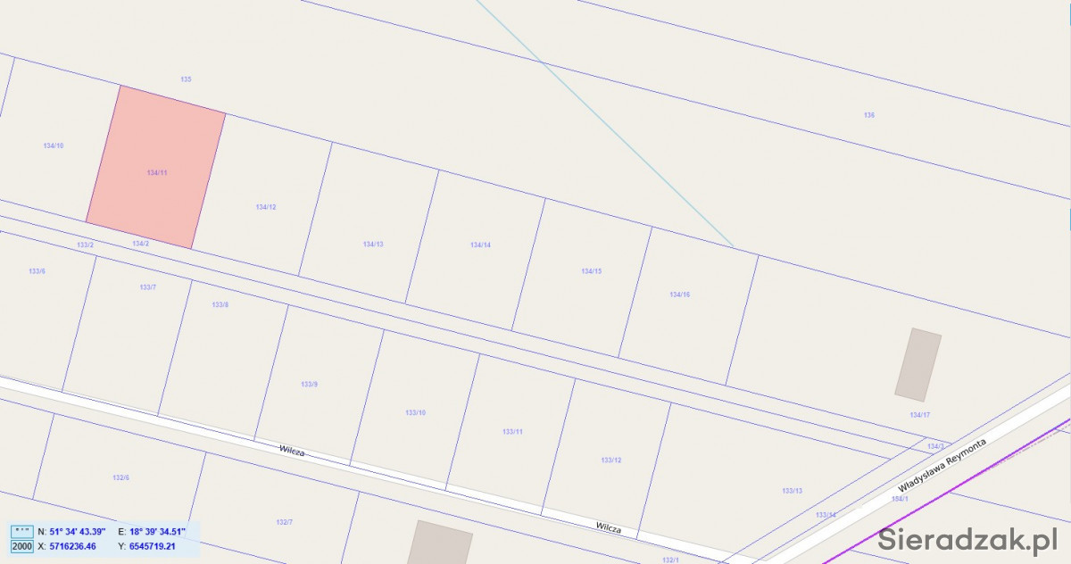 Działka z warunkami zabudowy o powierzchni 1096m2 i wymiarach 29,3m * 37,4m wraz z udziałem w 1/24 drogi wewnetrznej o szer. 8m (utwardzona). Działka usytuowana jest przy ulicy Reymonta na powstającym osiedlu domów jednorodzinnych.