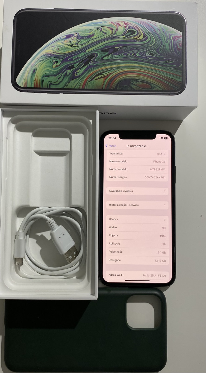 Sprzedam IPhone XS, 64 GB, RAM 4GB. Stan techniczny - 100% sprawny. Stan wizualny - jak na zdjęciach, bardzo dobry, drobne ślady użytkowania. W telefonie wymieniono kilka miesięcy temu baterię na wersję o zwiększonej pojemności. Zestaw zawiera telefon, oryginalne pudełko, etui, przewód do ładowarki. Szczegółowe informacje - telefonicznie.