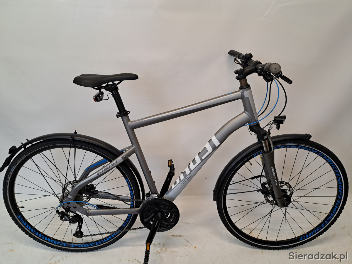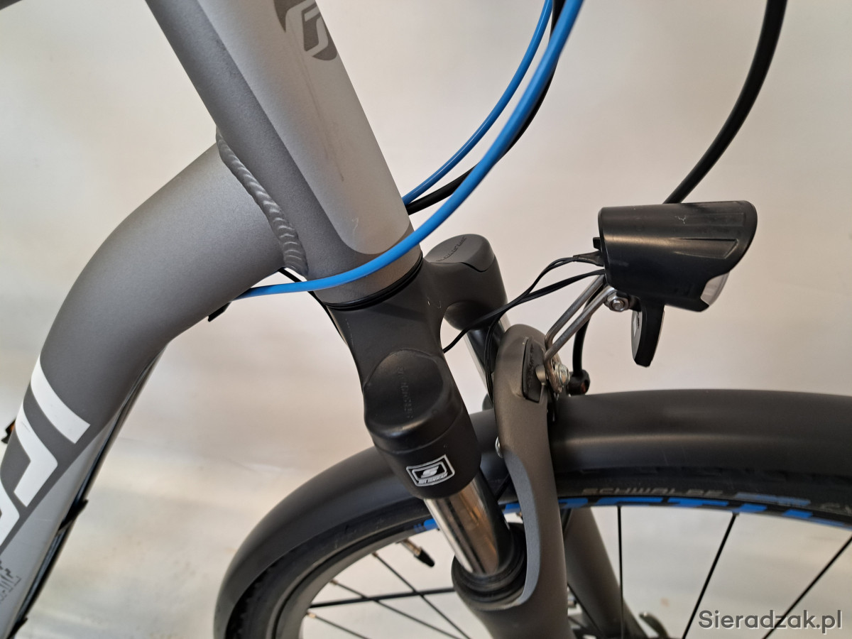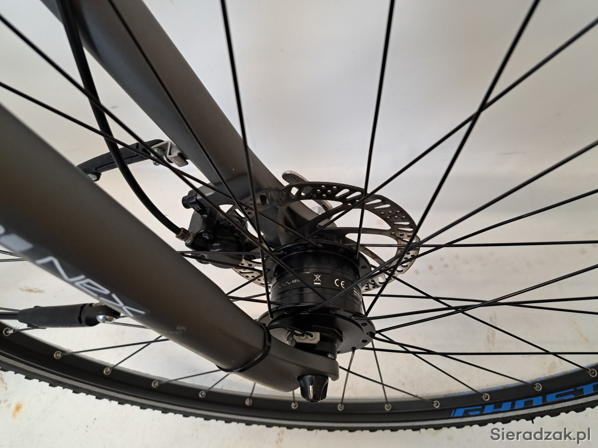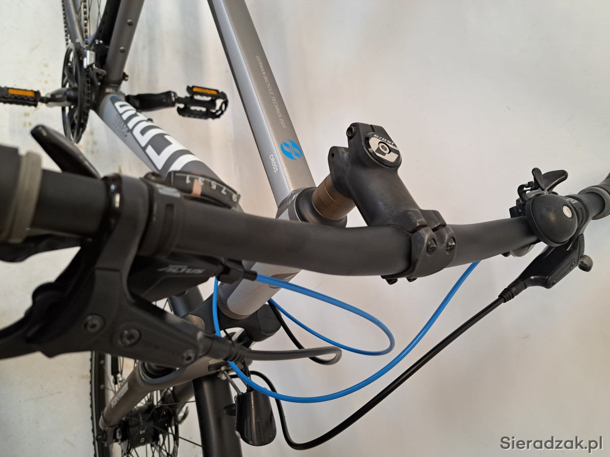 rama aluminium 22" 57cm,napęd 3x9,przerzutki shimano altus,manetki shimano altus,hamulce hydrauliczne tektro,amortyzator sr suntour nex,dynamo shimano w przednim kole,oświetlenie led,opony schwalbe cx comp.stan bardzo dobry.