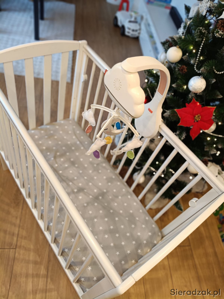 Sprzedam łóżeczko po jednym dziecku nie używane zbyt może przez dwa miesiące roz 105 na 57 regulacja wys drabinki regulacja podłoża materac jak nowy z kokosem karuzela Fischer działa super stan polecam .